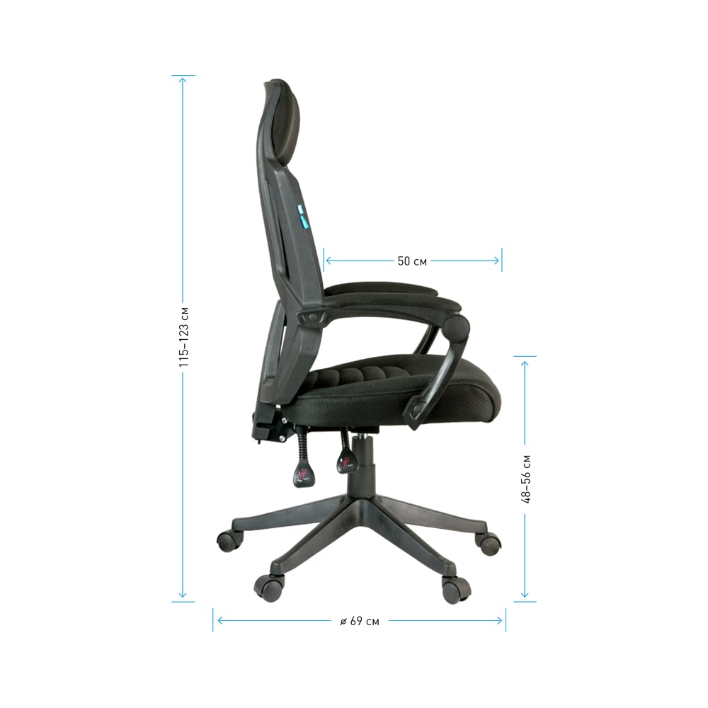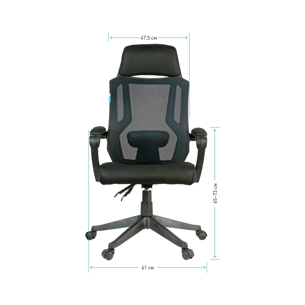 Габариты без упаковки 1150/1230х690х690 мм Вес нетто 16.42 кг Регулировка высоты сиденья да Требует сборки да Подлокотники да Подъемный механизм да Механизм качания да Регулировка высоты спинки нет Регулировка высоты подлокотников да Механизм вращения да Подголовник да Регулировка наклона спинки да Подставка для ног нет Max нагрузка 120 кг Ширина сиденья 475 мм Глубина сиденья 500 мм Ширина спинки 475 мм Высота спинки 670 мм Min высота сиденья 480 мм Мах высота сиденья 560 мм Поясничный упор есть Цвет спинки черный Материал крестовины пластик Материал подлокотников пластик/ткань Цвет сиденья черный Материал обивки сетка/ткань