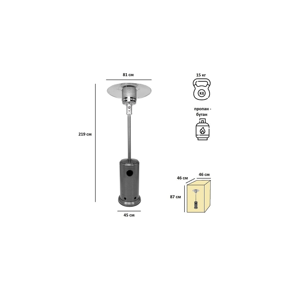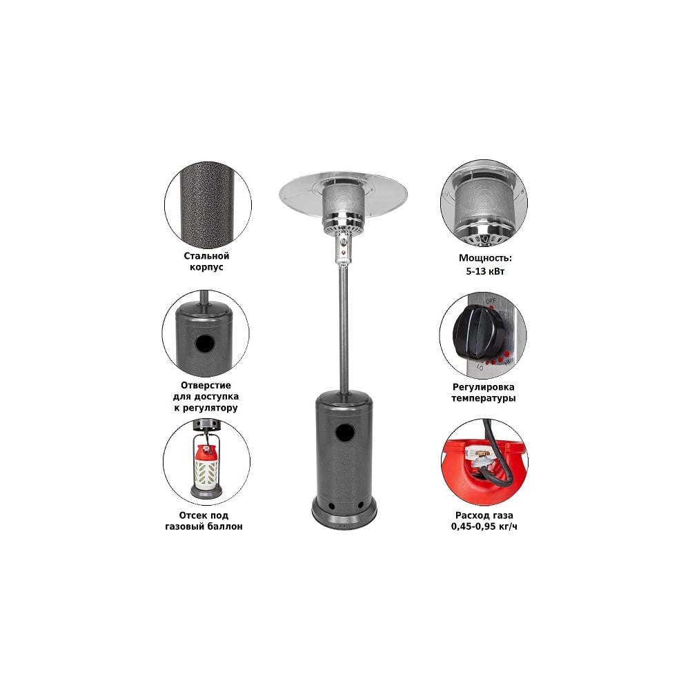 Уличный газовый обогреватель Aesto античный серый A-01T