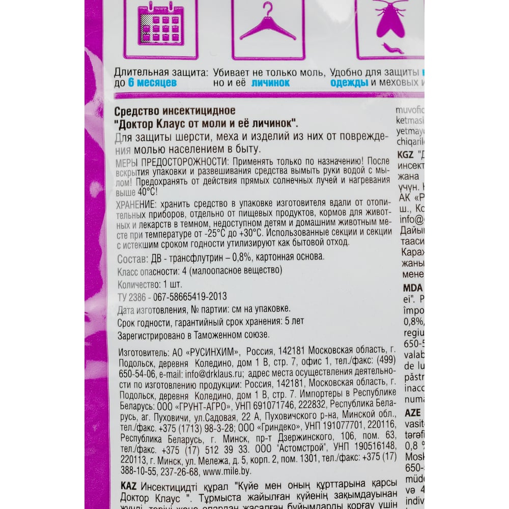 Пластиковая секция от моли Dr.Klaus без запаха DK03010042