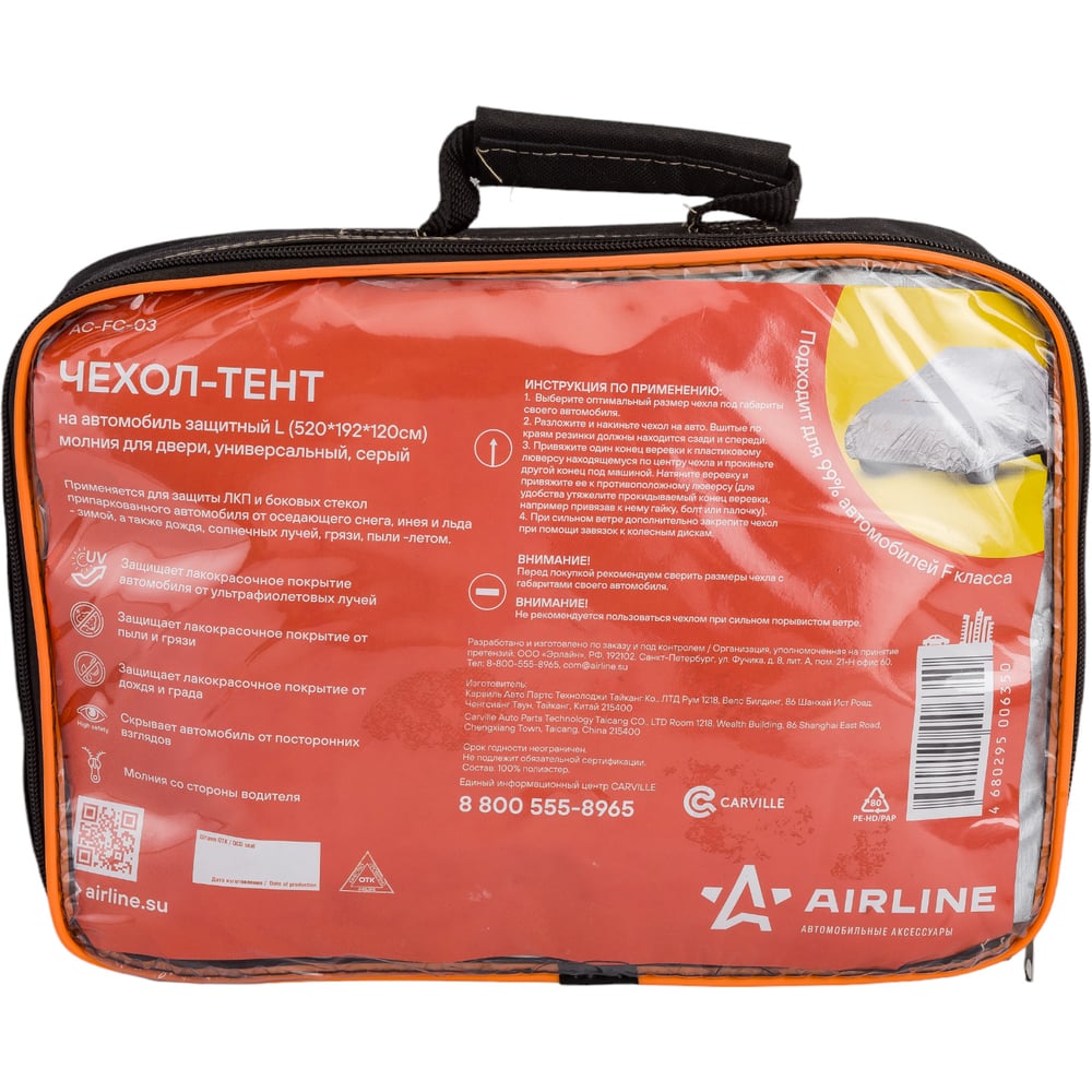 Универсальный защитный чехол-тент Airline на автомобиль, L 520x192x120 см, серый, молния для двери AC-FC-03