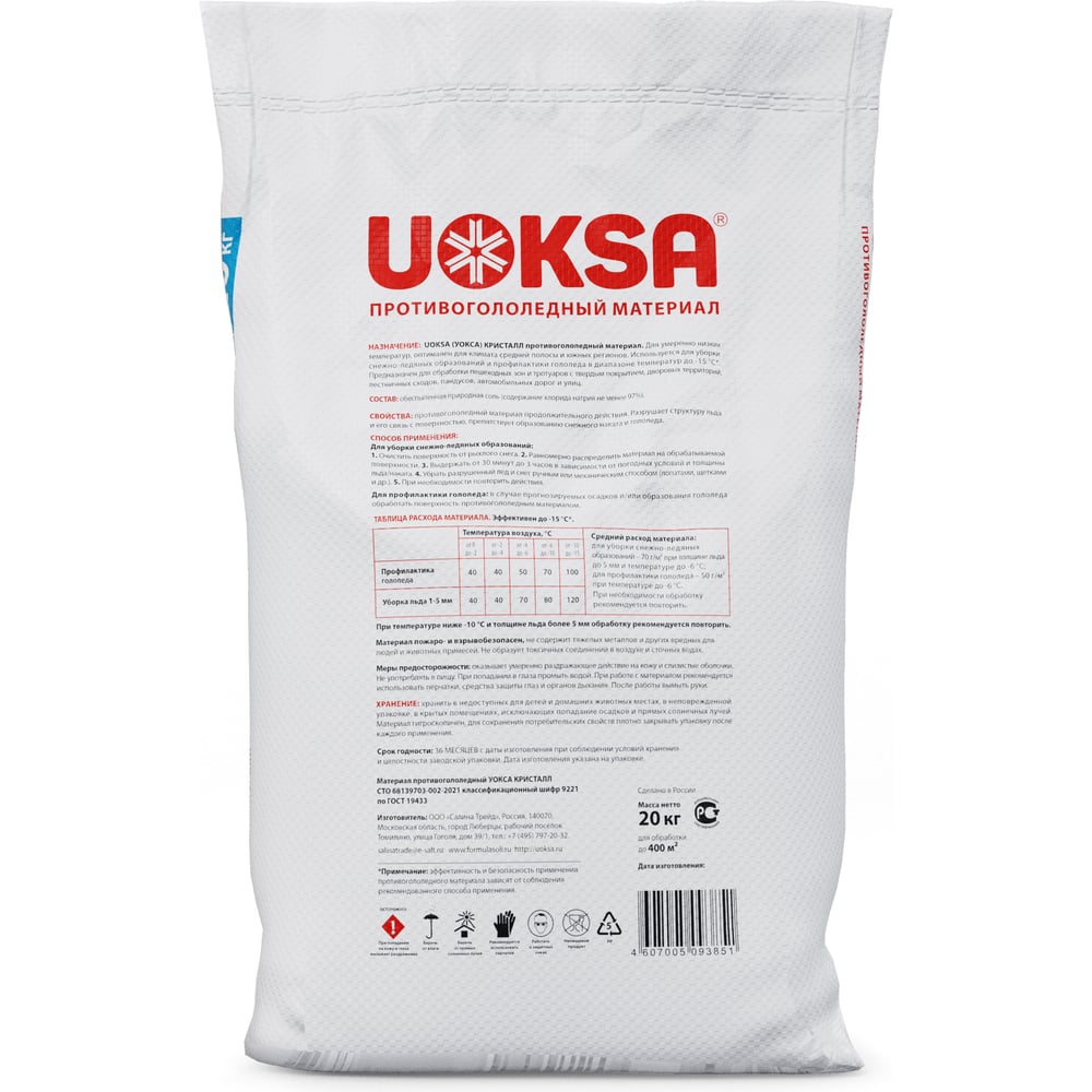 Универсальный реагент UOKSA Кристалл -15 C, 20 кг, мешок 1857
