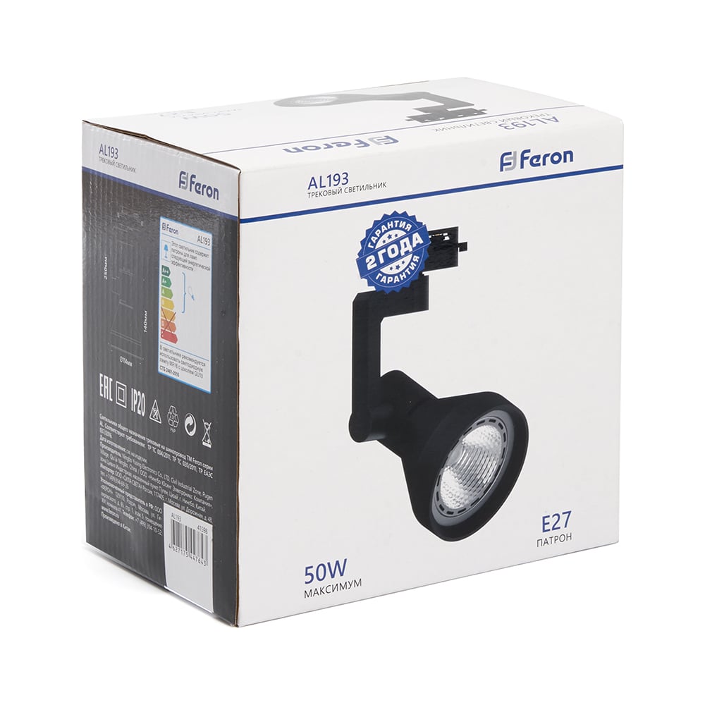 Трековый однофазный светильник на шинопровод FERON E27, AL193, 50W, 230V, черный 41598