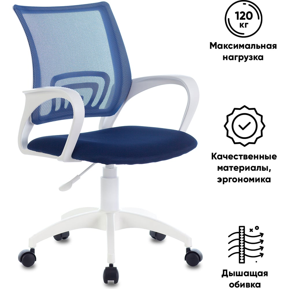 Компьютерное кресло Бюрократ CH-W695NLT темно-синий крестовина пластик белый CH-W695NLT/DB/TW-10N