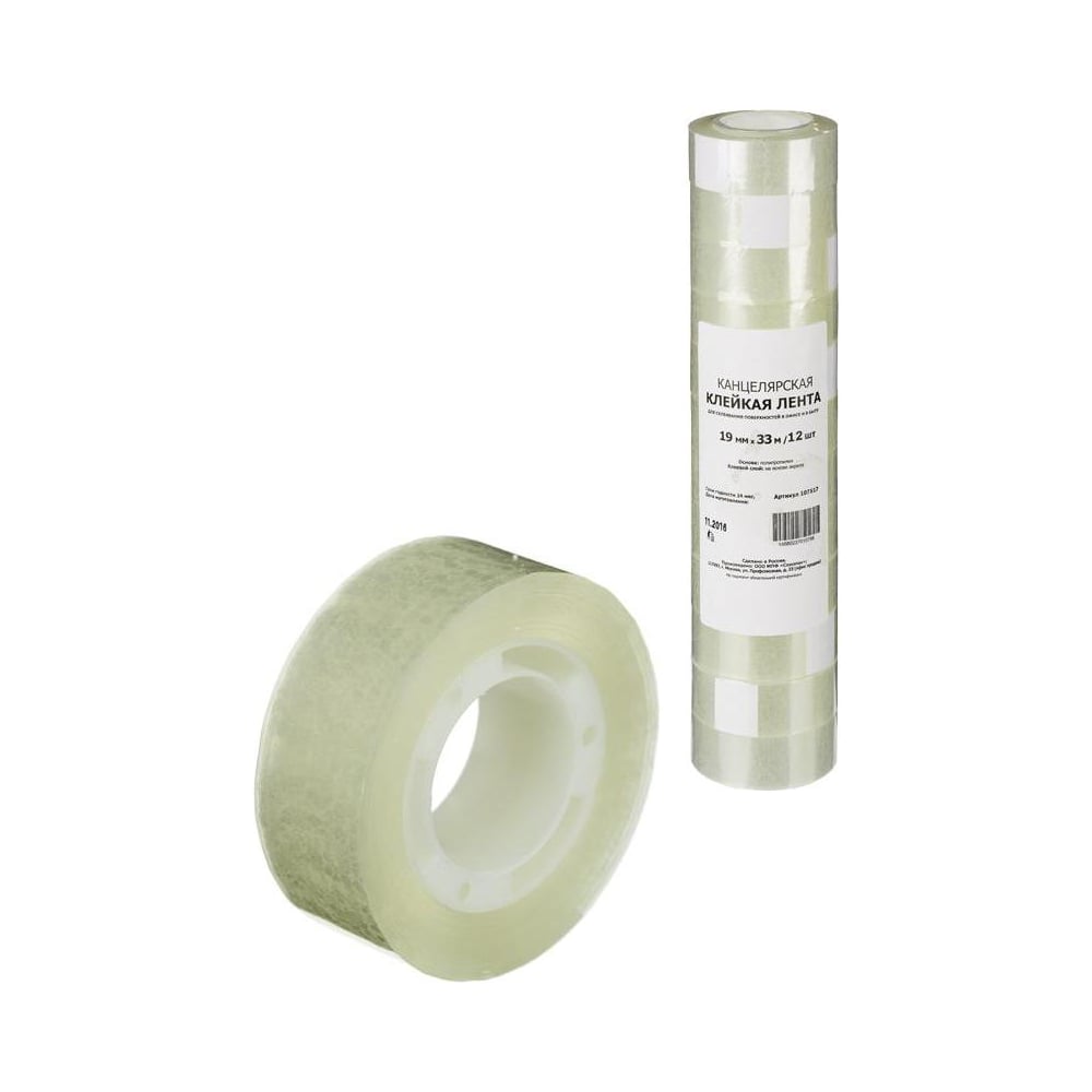 Канцелярская клейкая лента Комус 19 мм х 33 м, 12 шт./уп. 107517