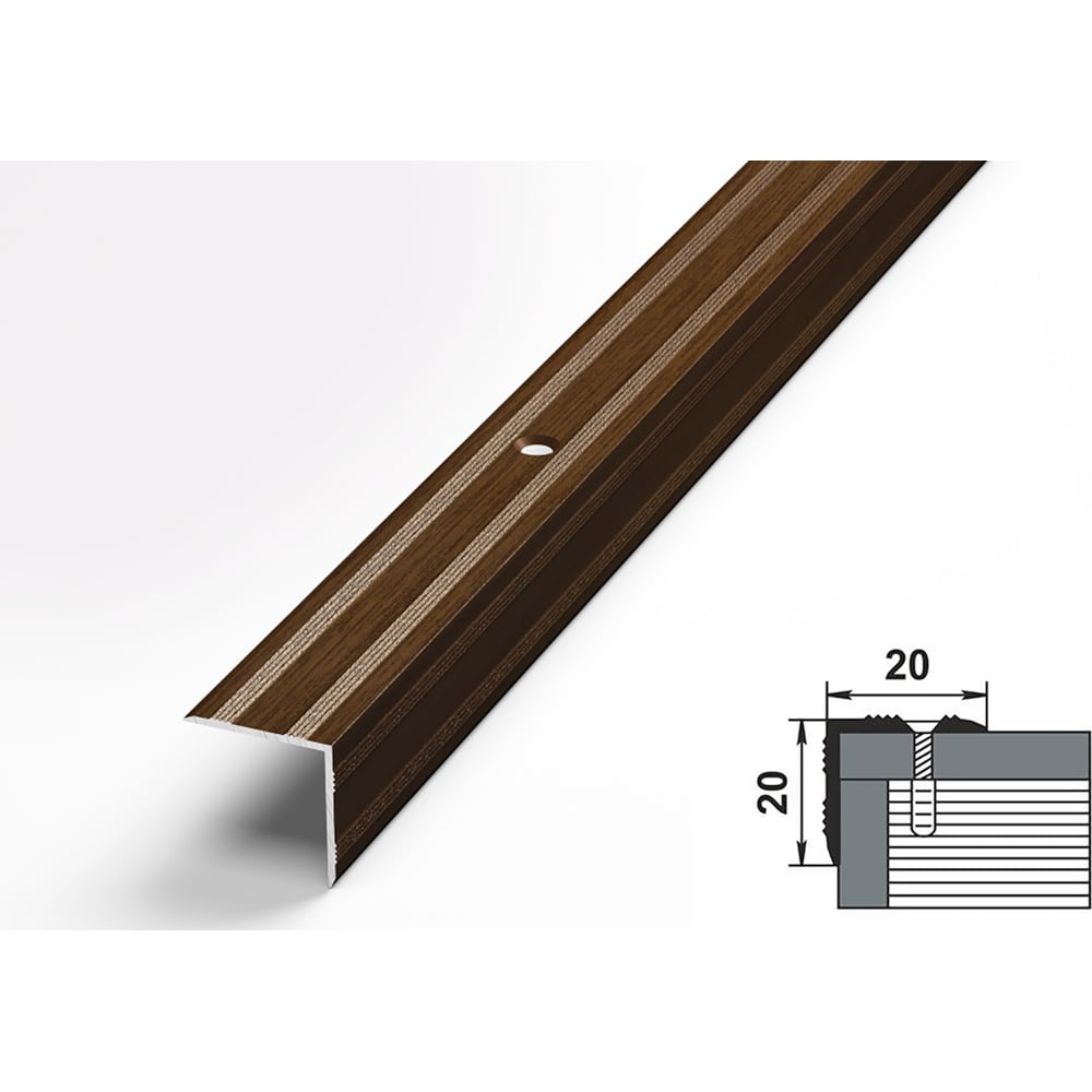Порог угловой алюминиевый декоративный (20х20 мм, 1,8 м, Венге) ЛУКА 00000002156