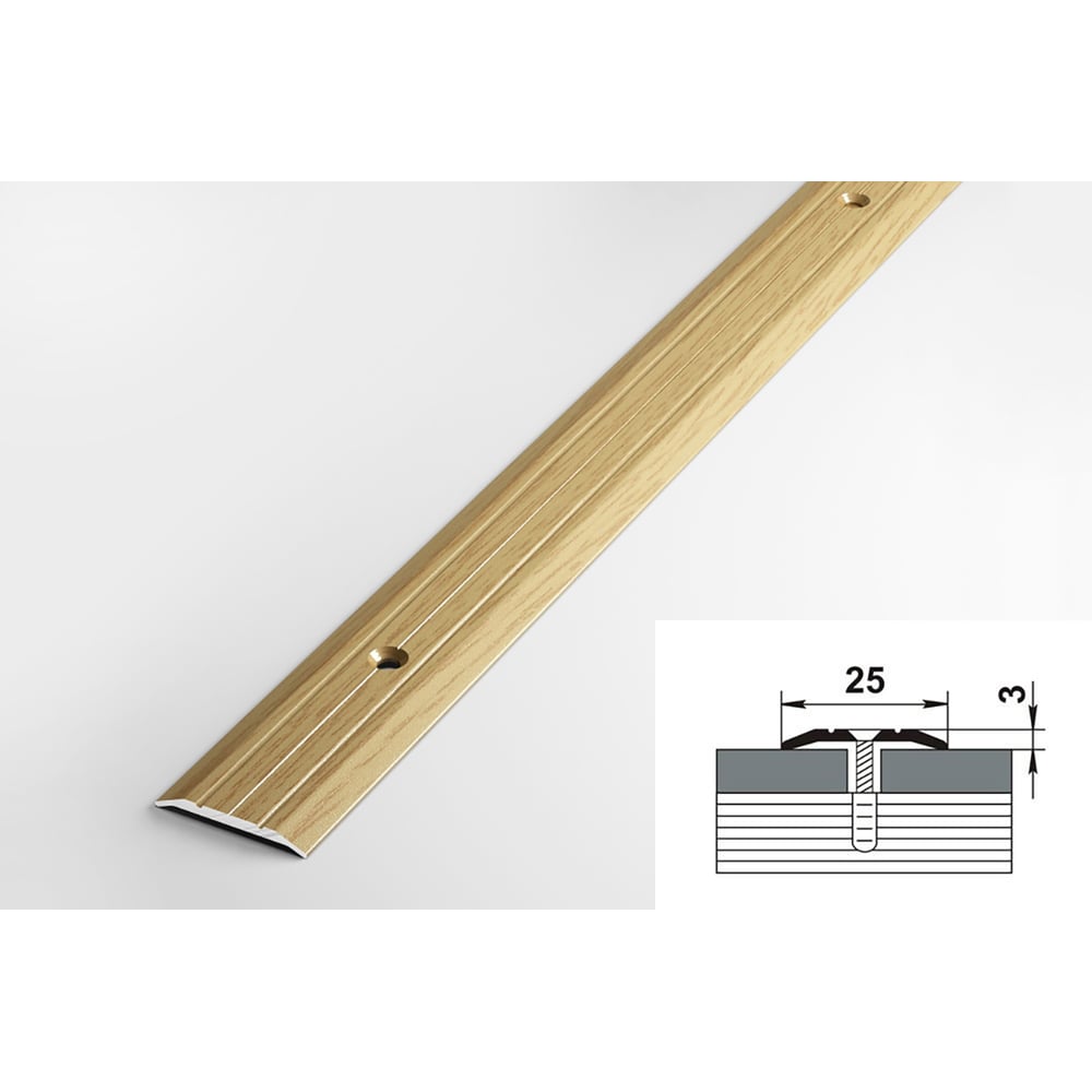 Порог прямой алюминиевый декоративный (25 мм, 1,8 м, Дуб светлый) ЛУКА 00000001337