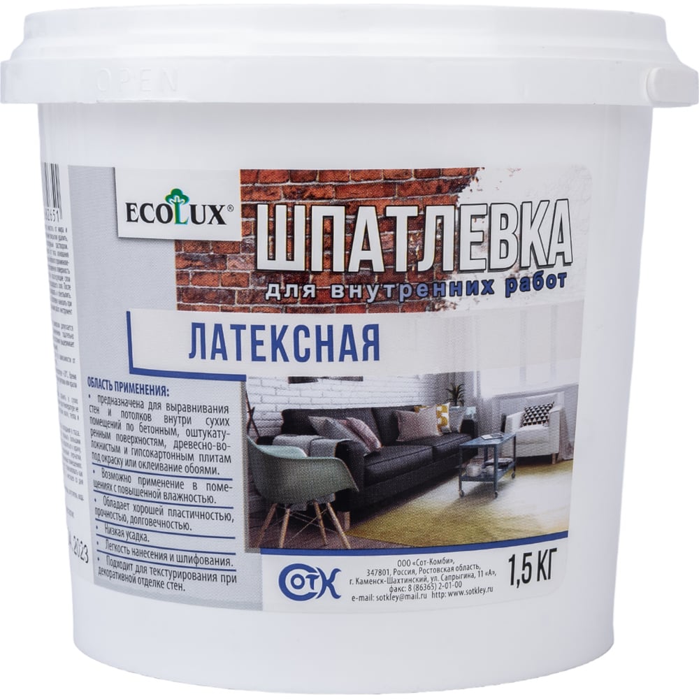 Латексная шпатлевка ECOLUX 1.5 кг 4607133682651