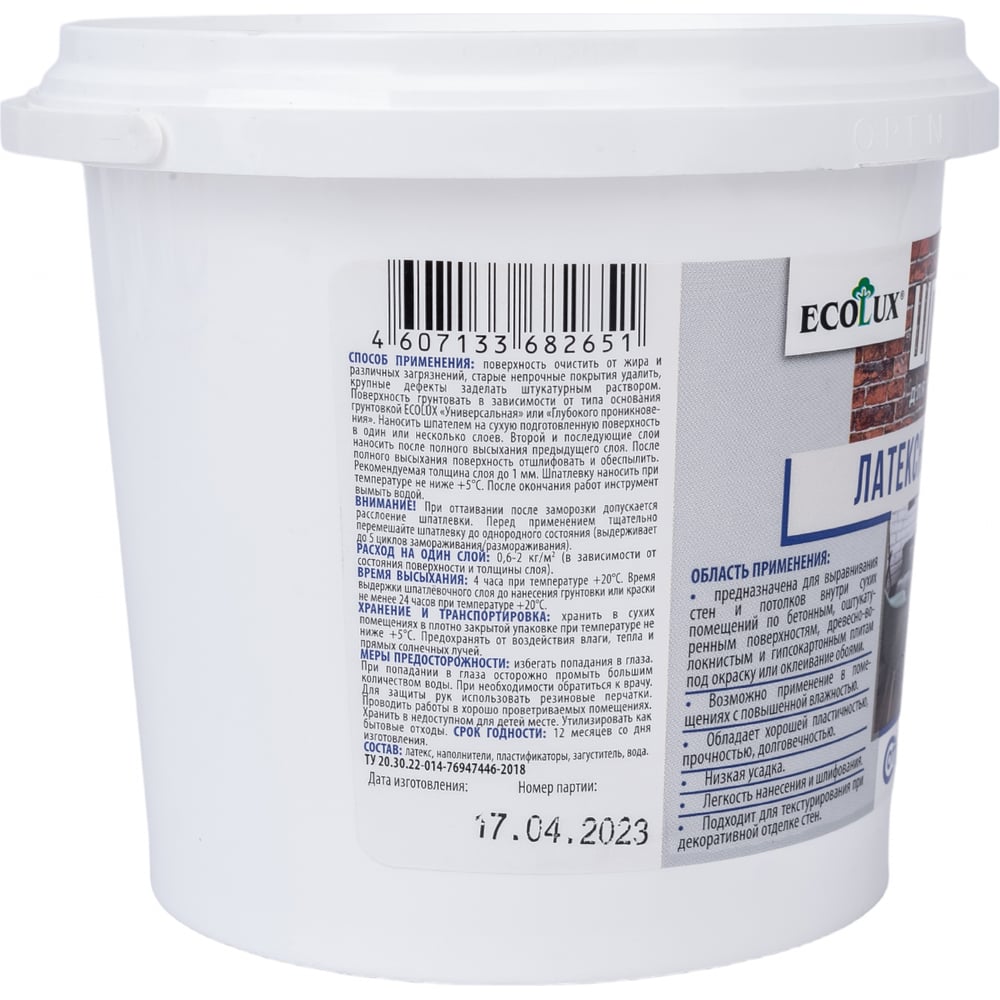 Латексная шпатлевка Ecolux 4607133682651