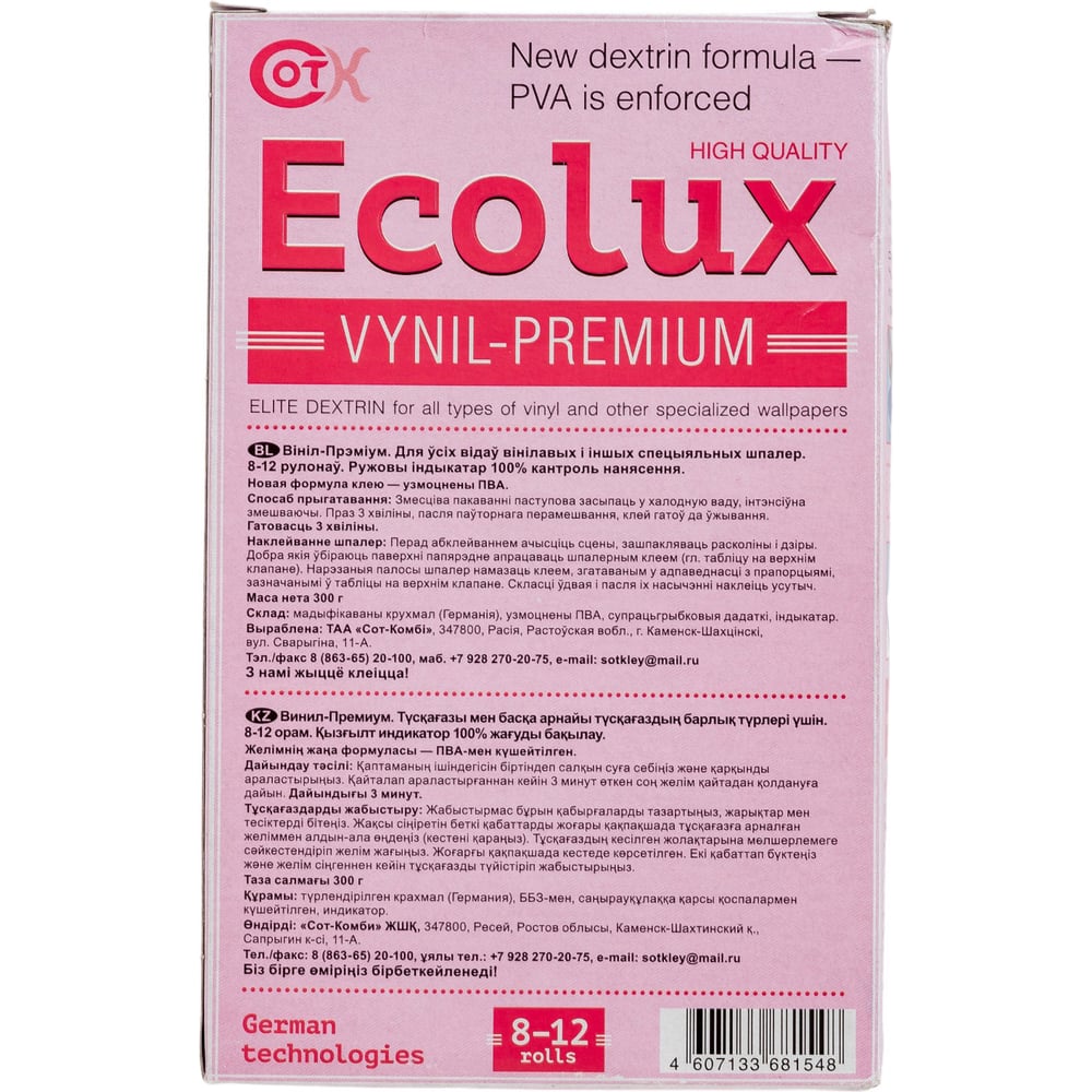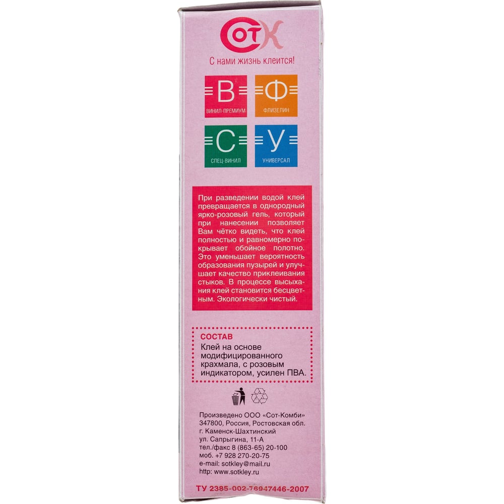 | Основа клея | модифицированный крахмал |