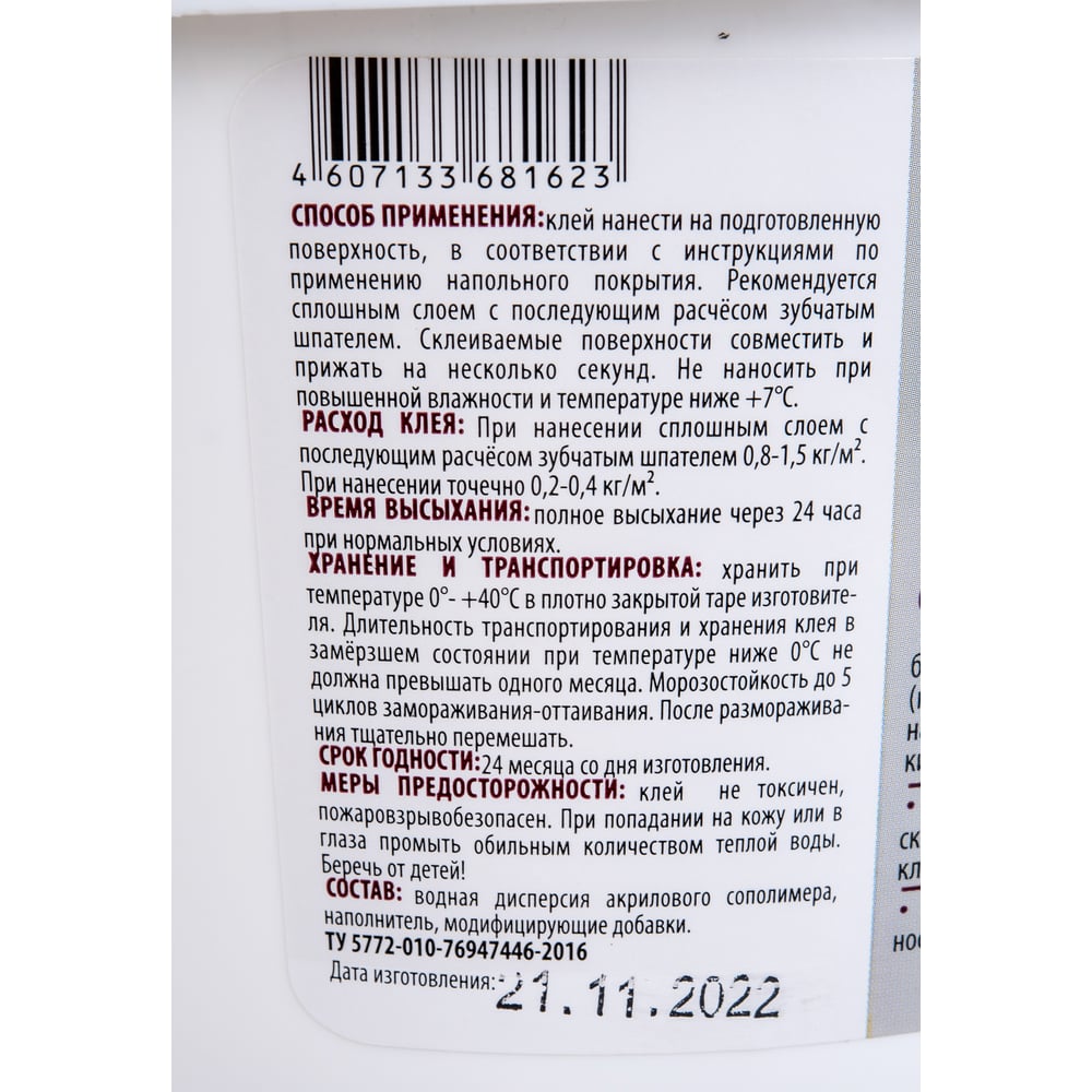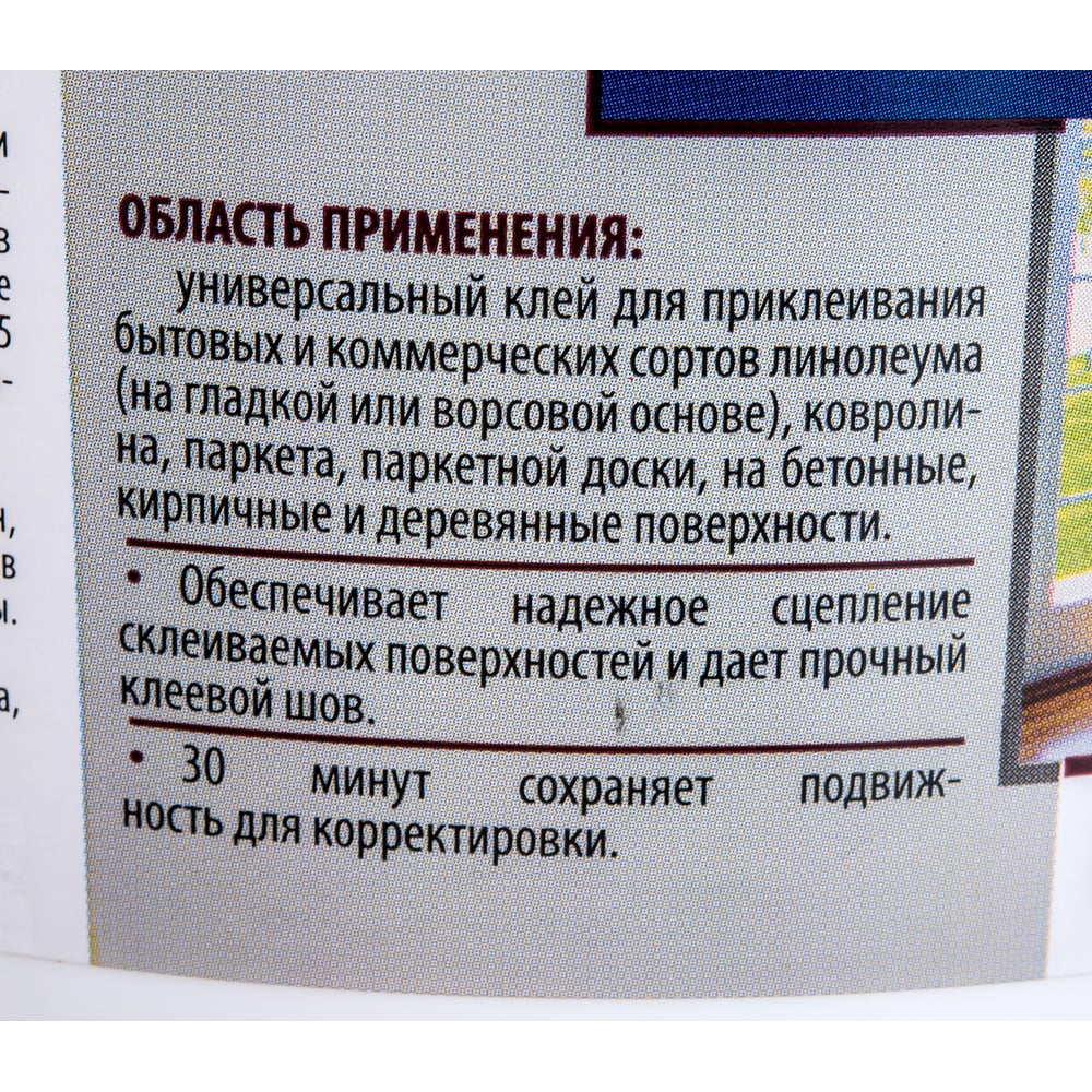 | Склеиваемые материалы | линолеум на гладкой или ворсовой основе, ковролин, паркет, паркетная доска |