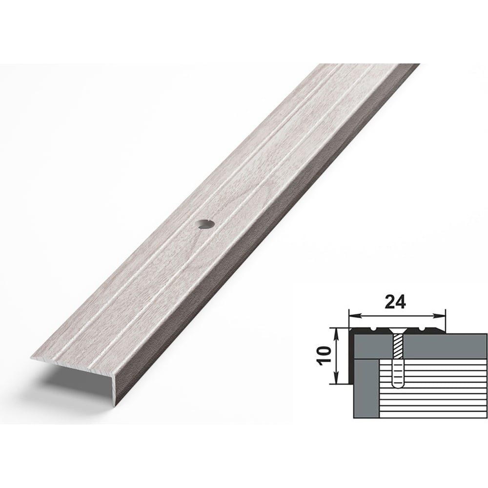 Порог угловой алюминиевый декоративный (24х10 мм, 0,9 м, Ясень белый) ЛУКА УТ000024615