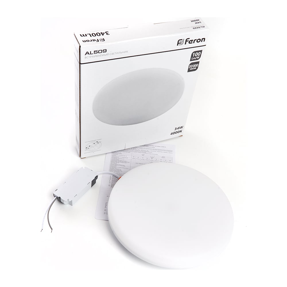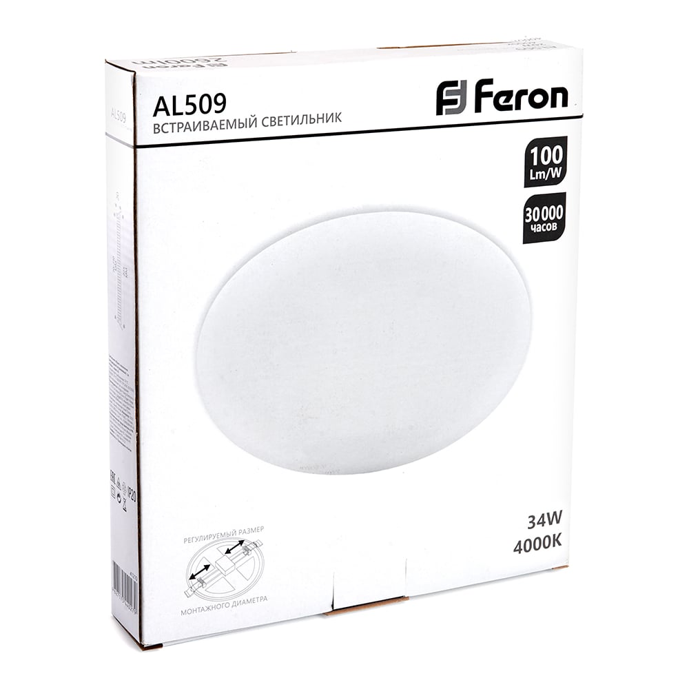 Светодиодный встраиваемый светильник FERON с регулируемым монтажным диаметром (до 190мм) AL509 34W 4000K белый FlexyRim 41567