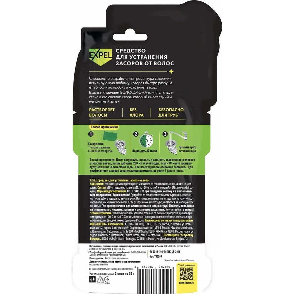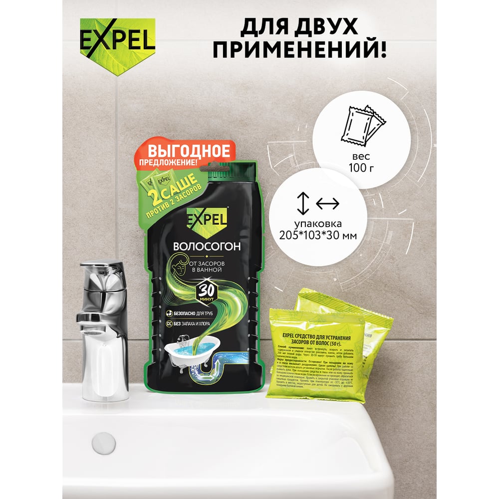 Средство для устранения засоров Expel ОТ ВОЛОС 2 саше по 50 г TS0009