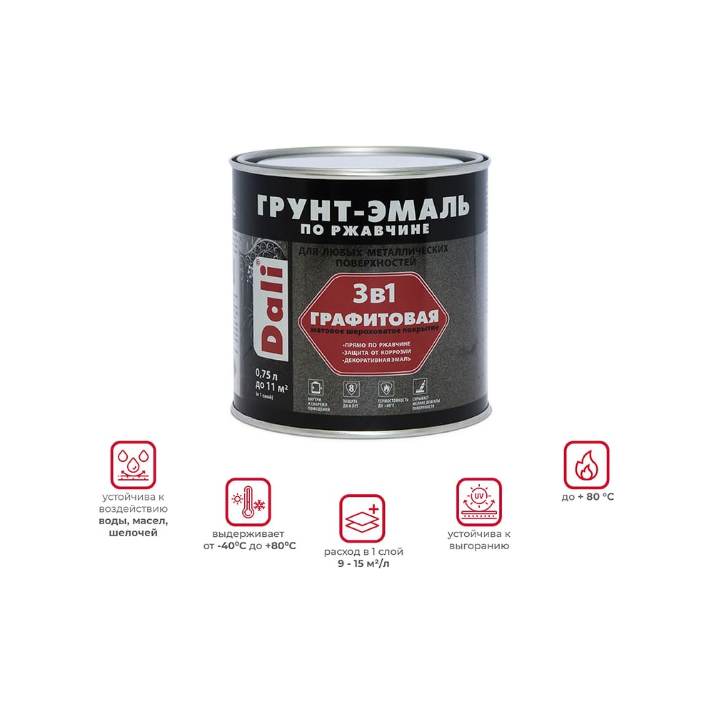 Грунт-эмаль по ржавчине DALI 3 в 1 Графитовая серебристая, 0.75 л 221452