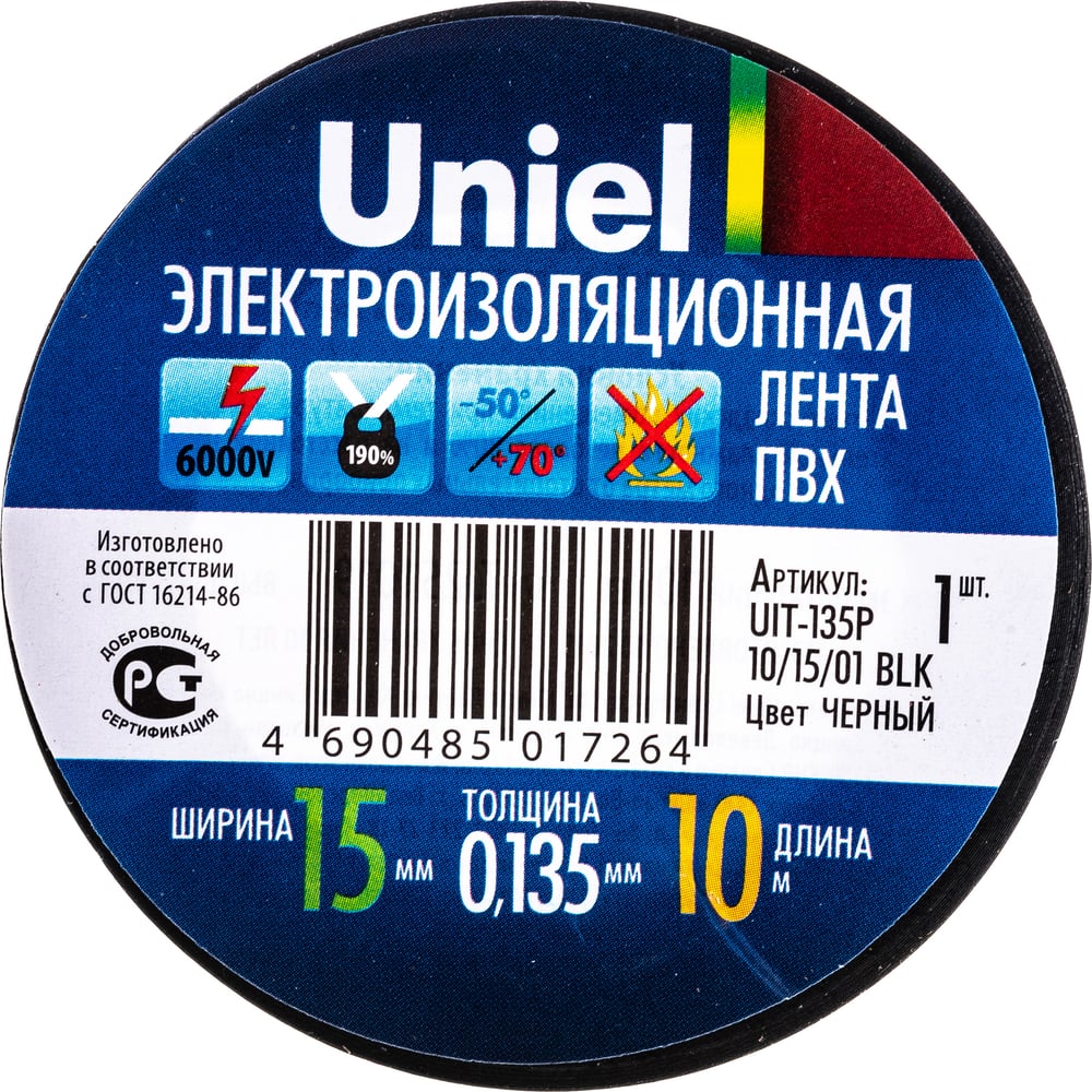 Изоляционная лента Uniel 10/15/01 BLK UIT-135P 4510