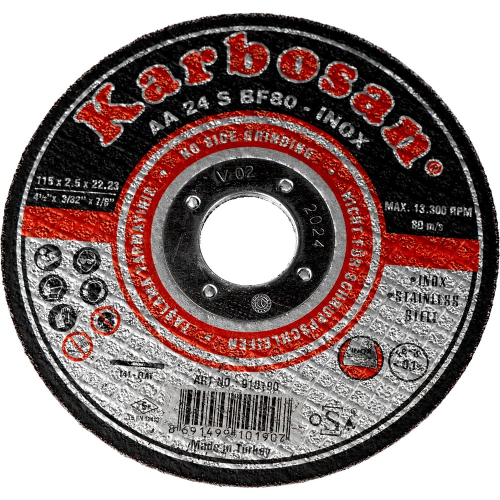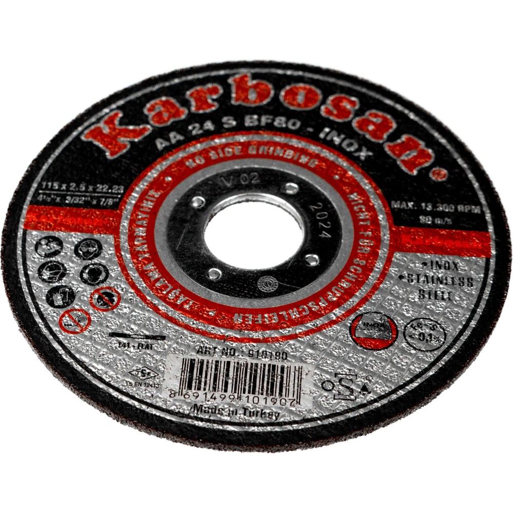 Диск отрезной по нержавеющей стали 115х2.5х22 мм INOX Karbosan KAR-910190