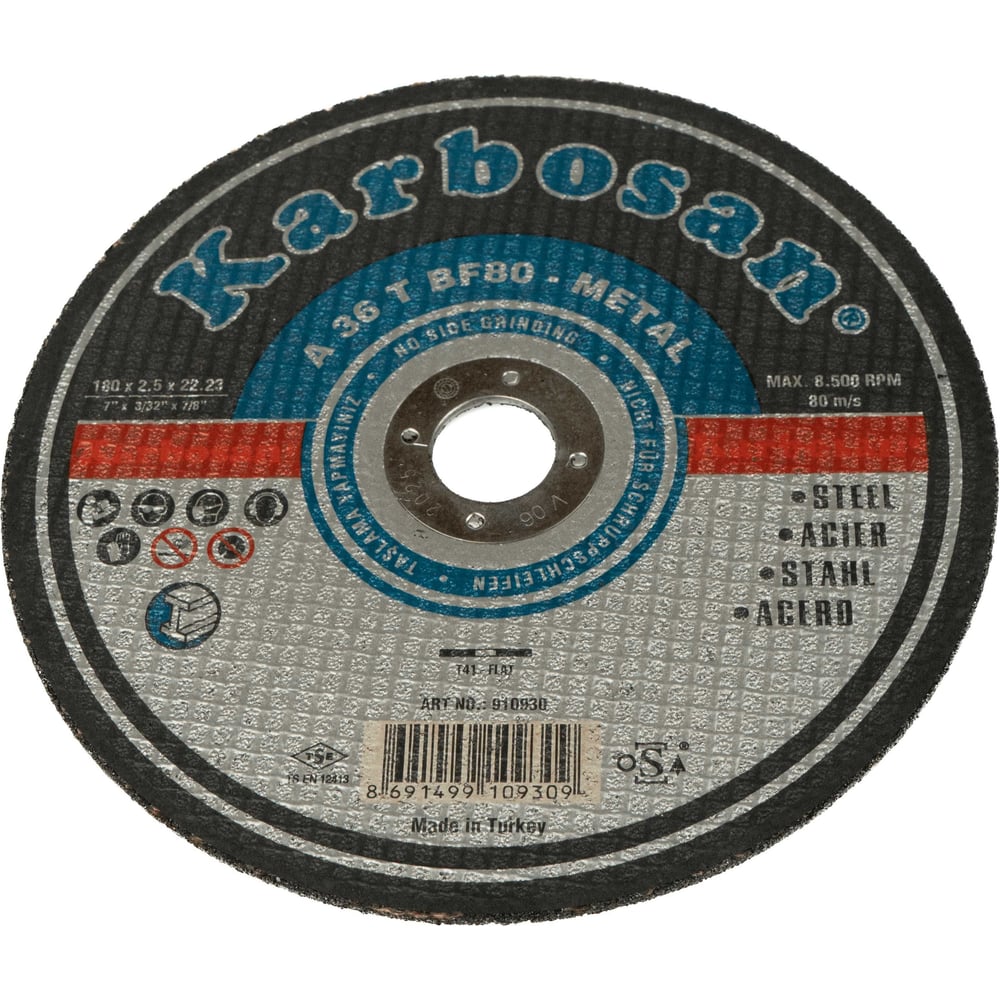 Диск отрезной по металлу 180х2.5х22 мм Karbosan KAR-910930