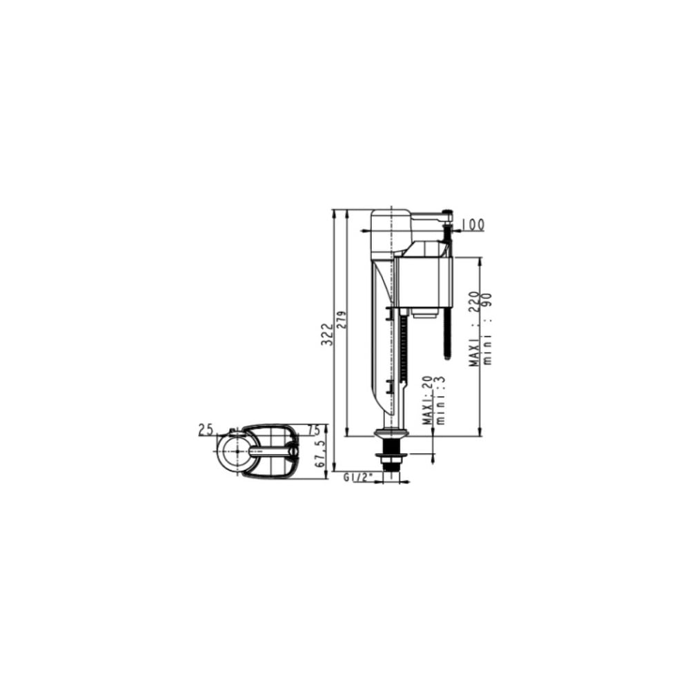 Двухкнопочная арматура WIRQUIN "MW" c заливным клапаном "Jollyfill" донный, пластик 10975007