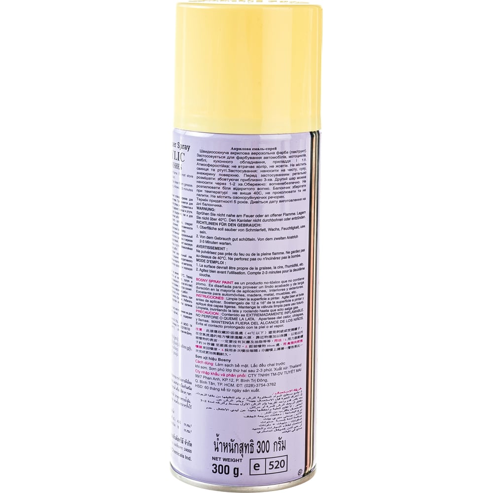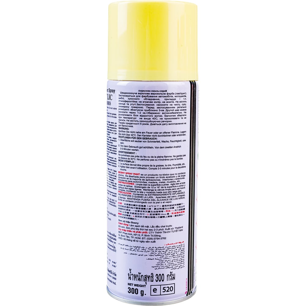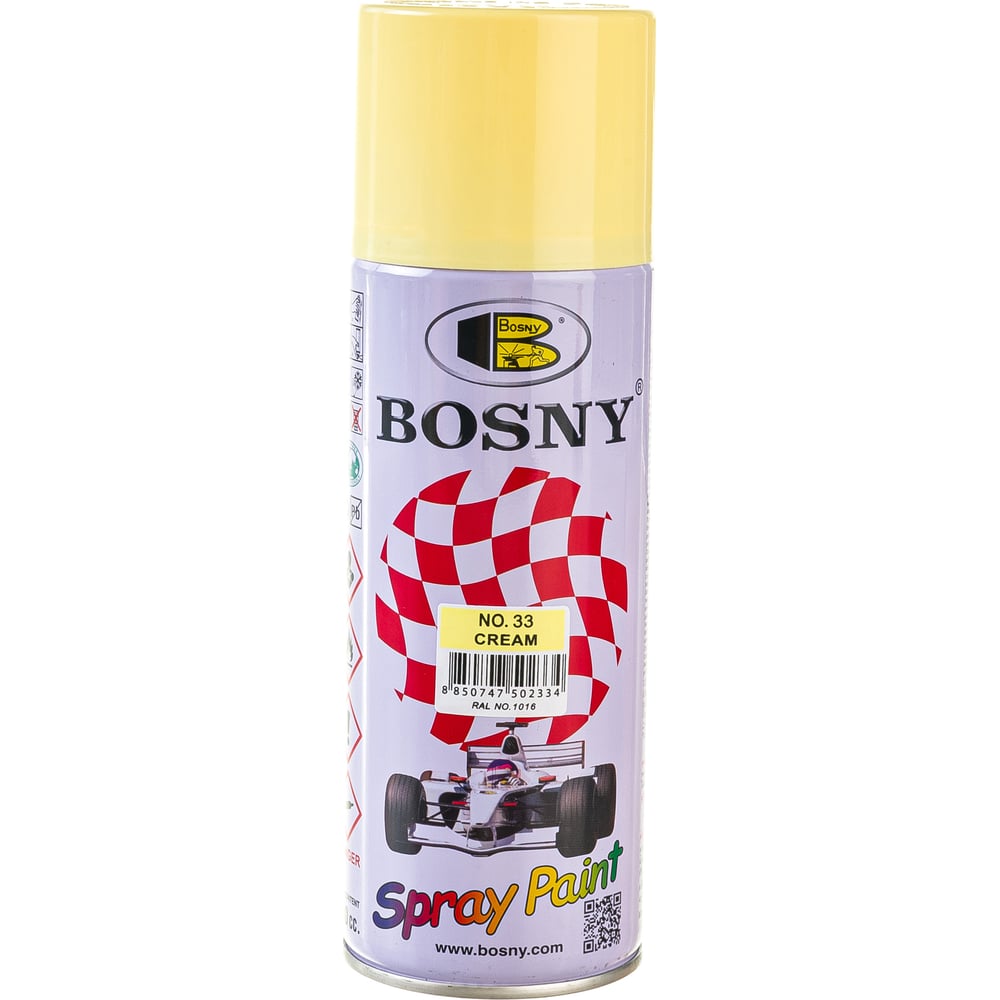 Акриловая аэрозольная краска Bosny бледно - желтый 0.52л Ral 1016 33