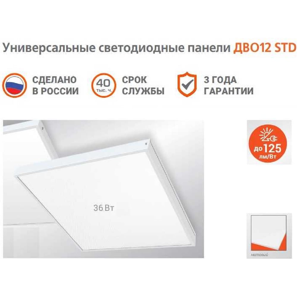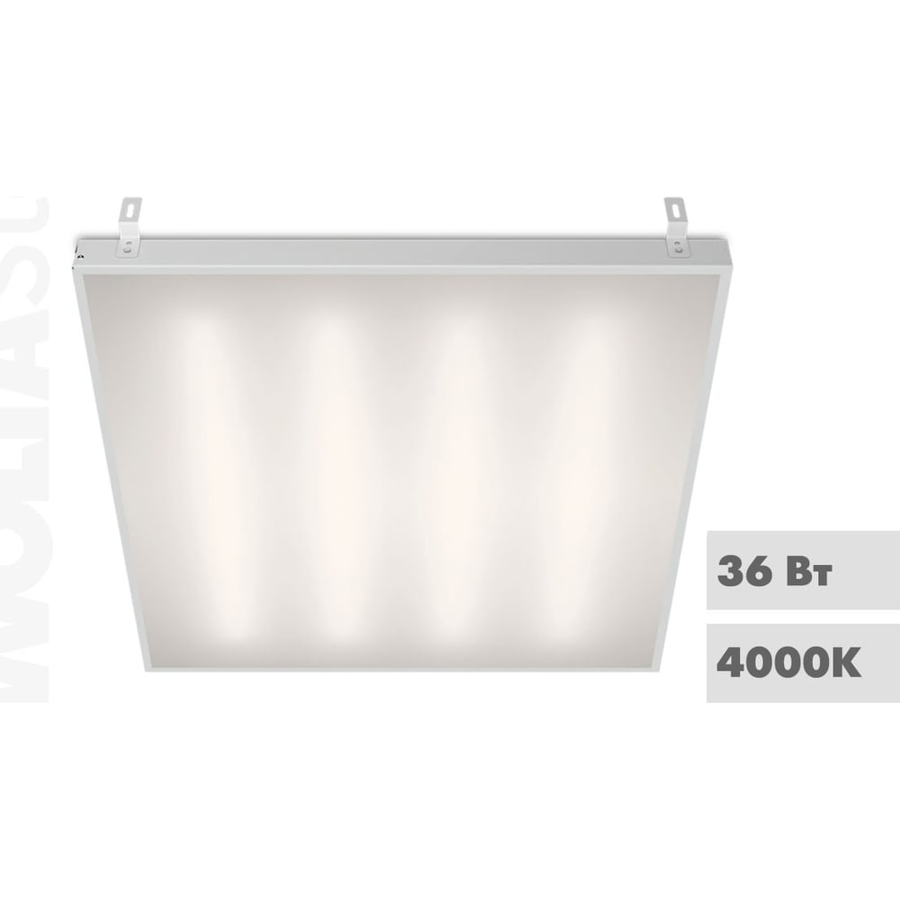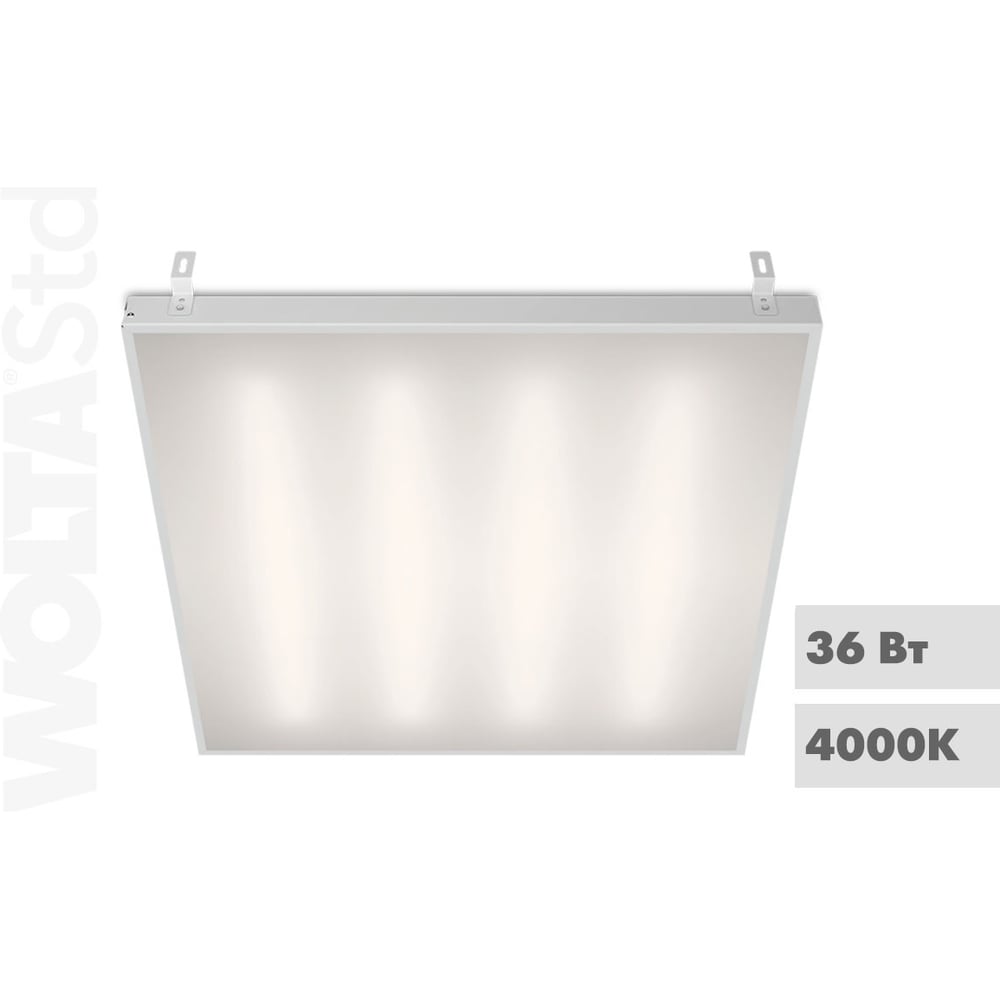 Светодиодная панель Wolta для потолка Грильято, мощность 36Вт, 4000К Дневной свет, IP40, матовый рассеиватель, световой поток 4100 Лм, артикул ДВО12-36-001-4К