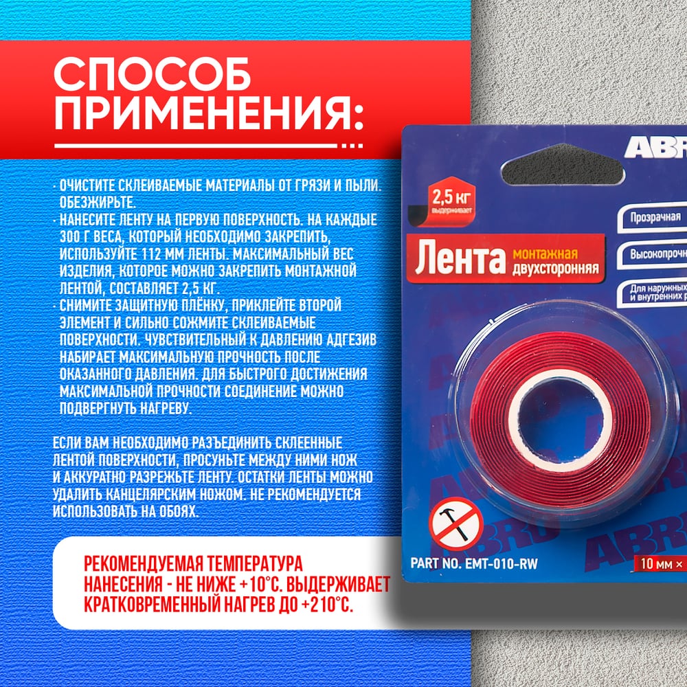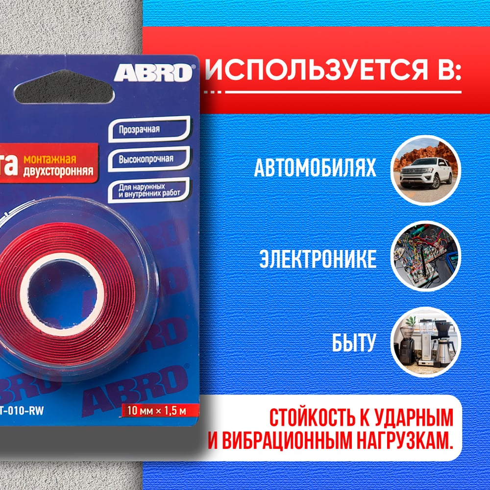 Двухсторонняя монтажная клейкая лента ABRO EMT-010-RW