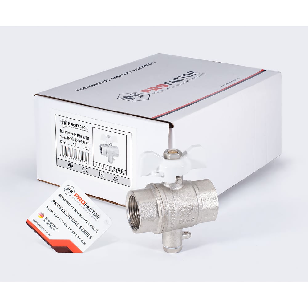 Шаровой кран PROFACTOR с отводом М10 под датчик температуры, в/в 3/4 дюйма PF FBV 301M10