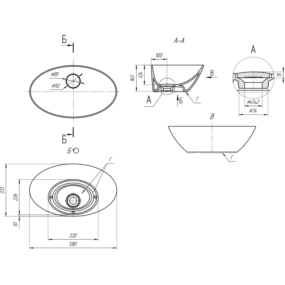 | Отверстие для перелива | нет |
