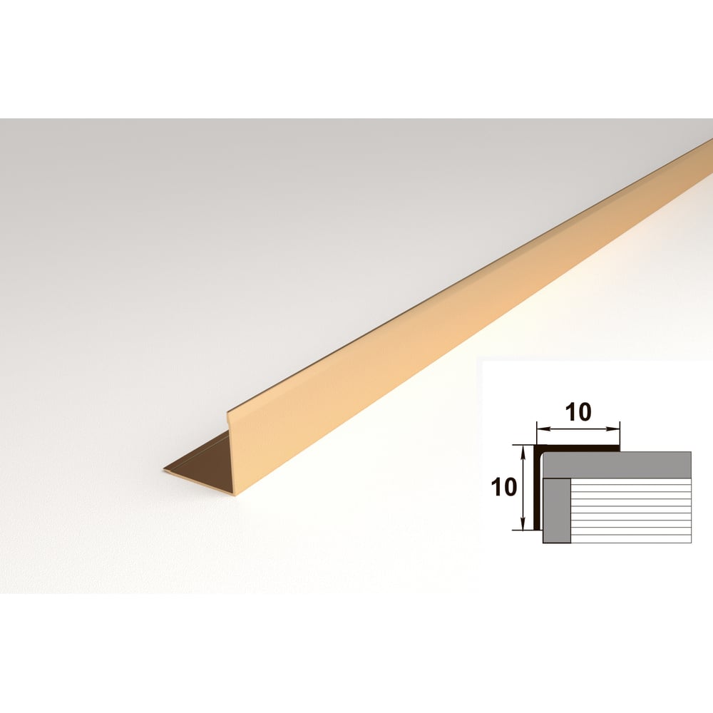 Угловой профиль ЛУКА алюминиевый, анодированный, 10х10х1 мм, 2,7 м, 5 шт./уп. золото УТ000030998