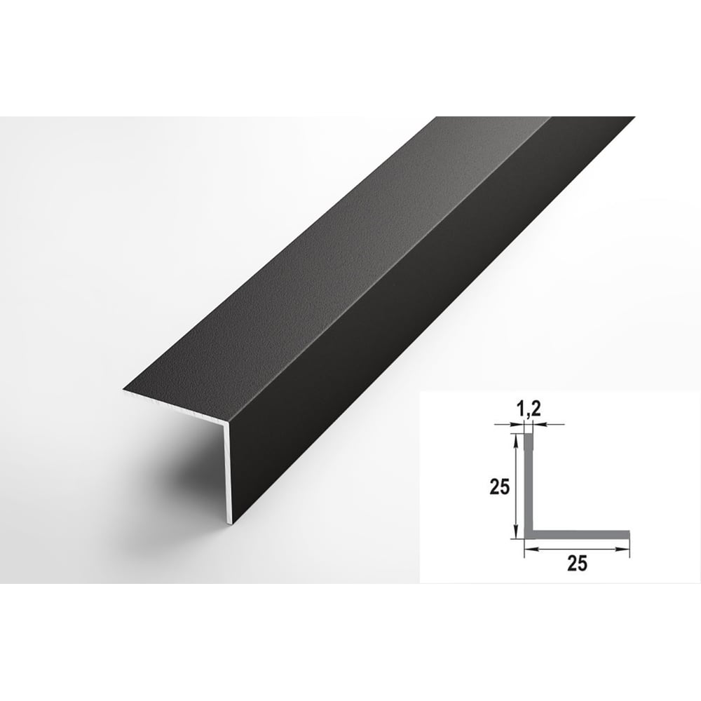 Декоративный угловой профиль ЛУКА алюминиевый, 25х25х1,2 мм, 2,7 м, 5 шт./уп. черный УТ000020817