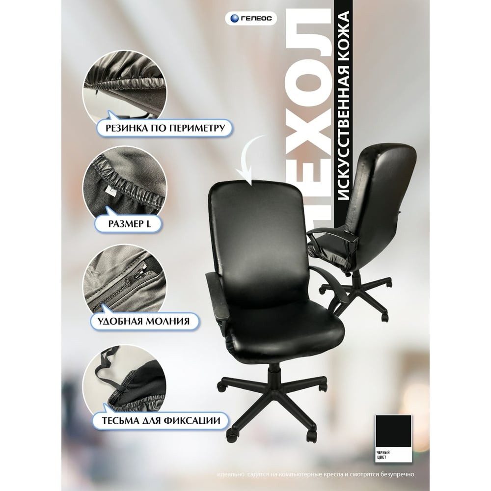 Чехол для компьютерного кресла ГЕЛЕОС 536Л размер L, кожа, черный ГЧ00536Л