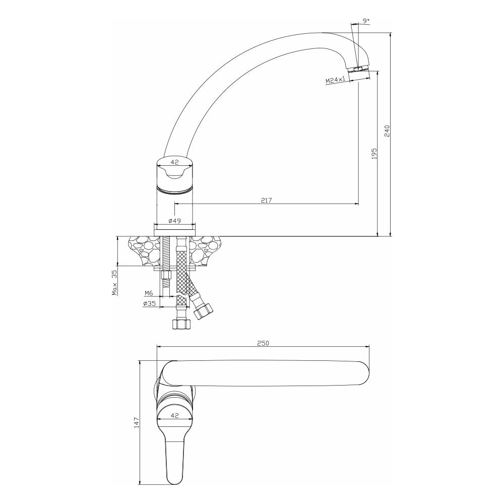 | Высота смесителя | 240 мм |