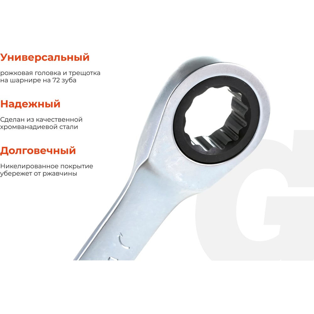 Комбинированный трещоточный ключ Gigant 13мм, сталь Cr-V, 72 зуба GRW13