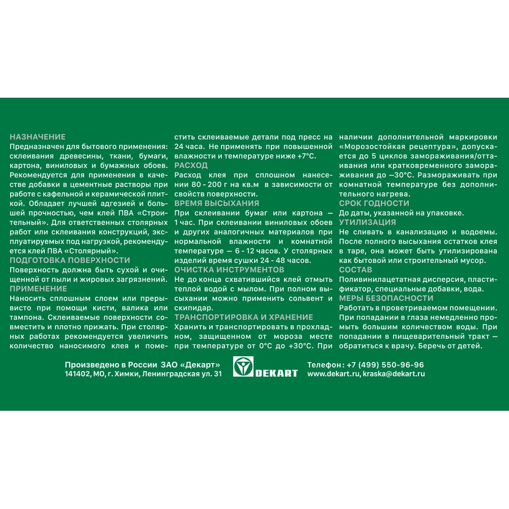 | Основа клея | ПВА (поливинилацетат) |