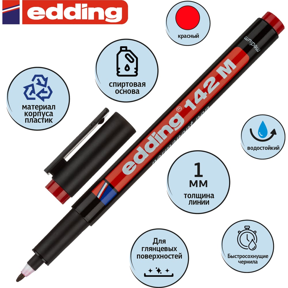Перманентный маркер для проекторных пленок EDDING круглый наконечник, 1.0 мм, красный E-142#2 1183507
