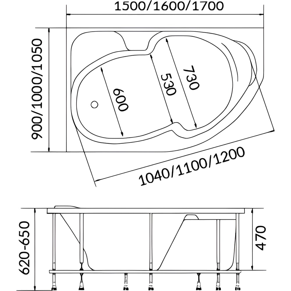 | Глубина ванны | 470 мм |