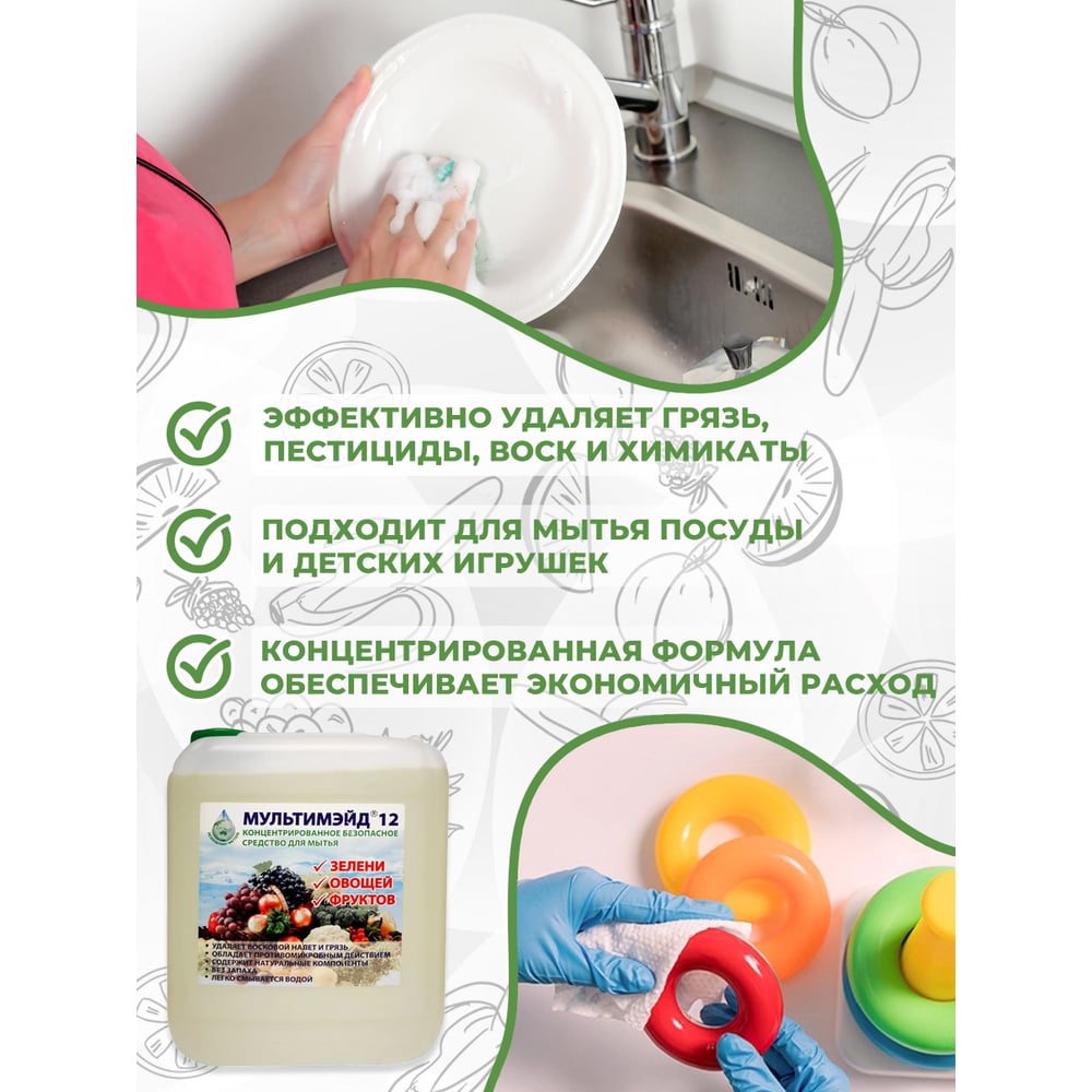 Концентрированное средство Мультимэйд 12 для мытья зелени, овощей, фруктов, 5 л 4607002303410