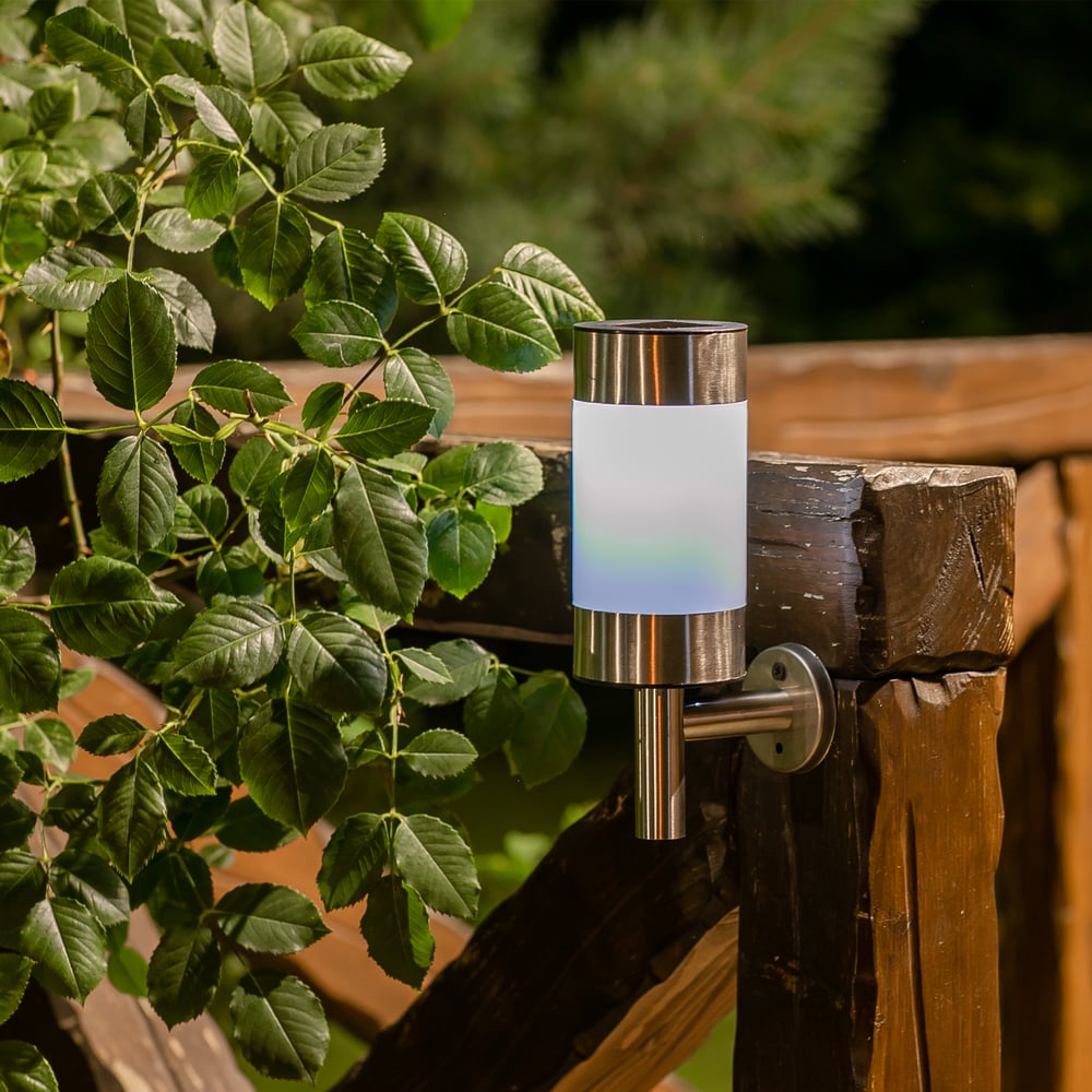 Габариты без упаковки 155х230х76 мм Тип ландшафтные Лампа в комплекте есть Вес нетто 0.2 кг Цоколь встроенные светодиоды (LED) Тип лампы встроенные светодиоды Защита от пыли и влаги IP44 Материал корпуса металл Вид крепления настенный Цвет плафона белый Цвет корпуса хром Провод без провода Питание солнечная; AA/пальчиковая(R6;LR6;FR6) Количество ламп 1 шт Датчик движения нет Датчик освещенности да Высота/длина 230 мм Ширина изделия 155 мм Возможность подключения диммера нет