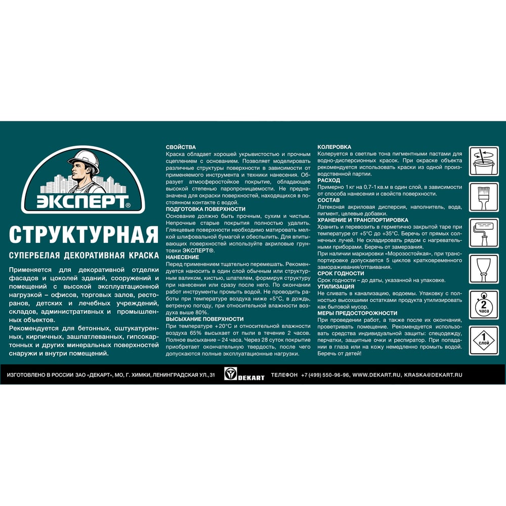 | Система колеровки | ручная колеровка белой краски акриловыми колорантами или пигментами для красок на водной основе |