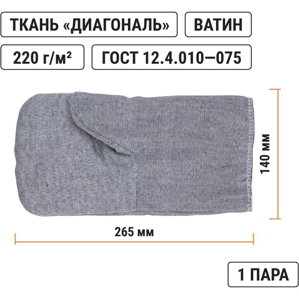 Рабочие рукавицы без наладонника TDM ELECTRIC основа бязь, ватин, серые, 1 пара, серия "Полюс" SQ1016-0516