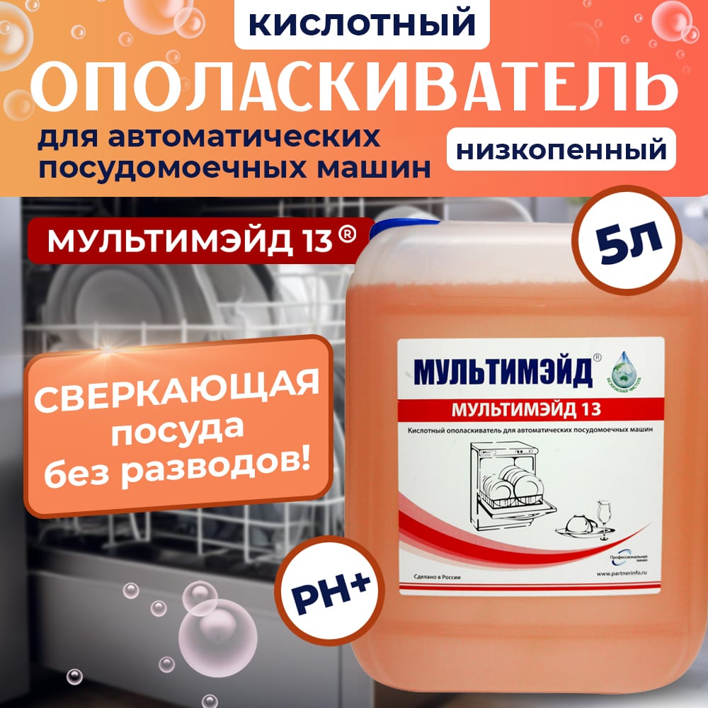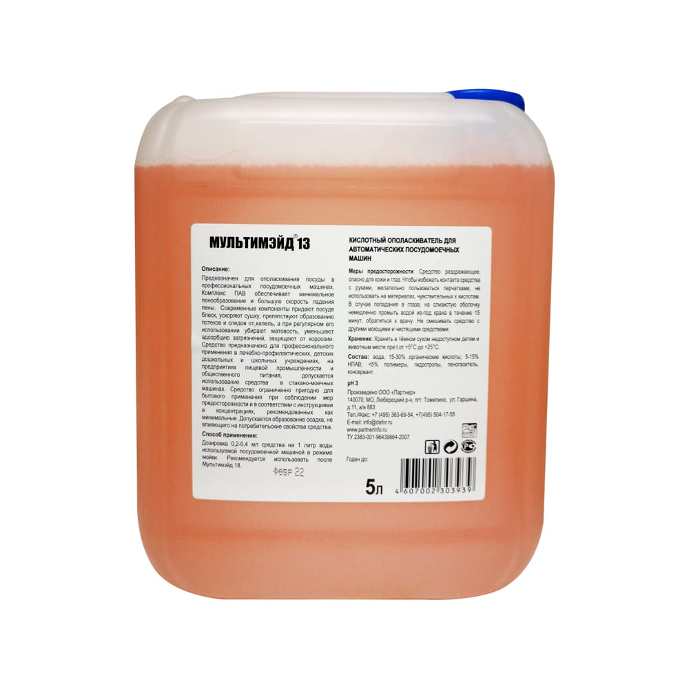 Кислотный ополаскиватель Мультимэйд 13 для автоматических посудомоечных машин, 5 л 4607002303939