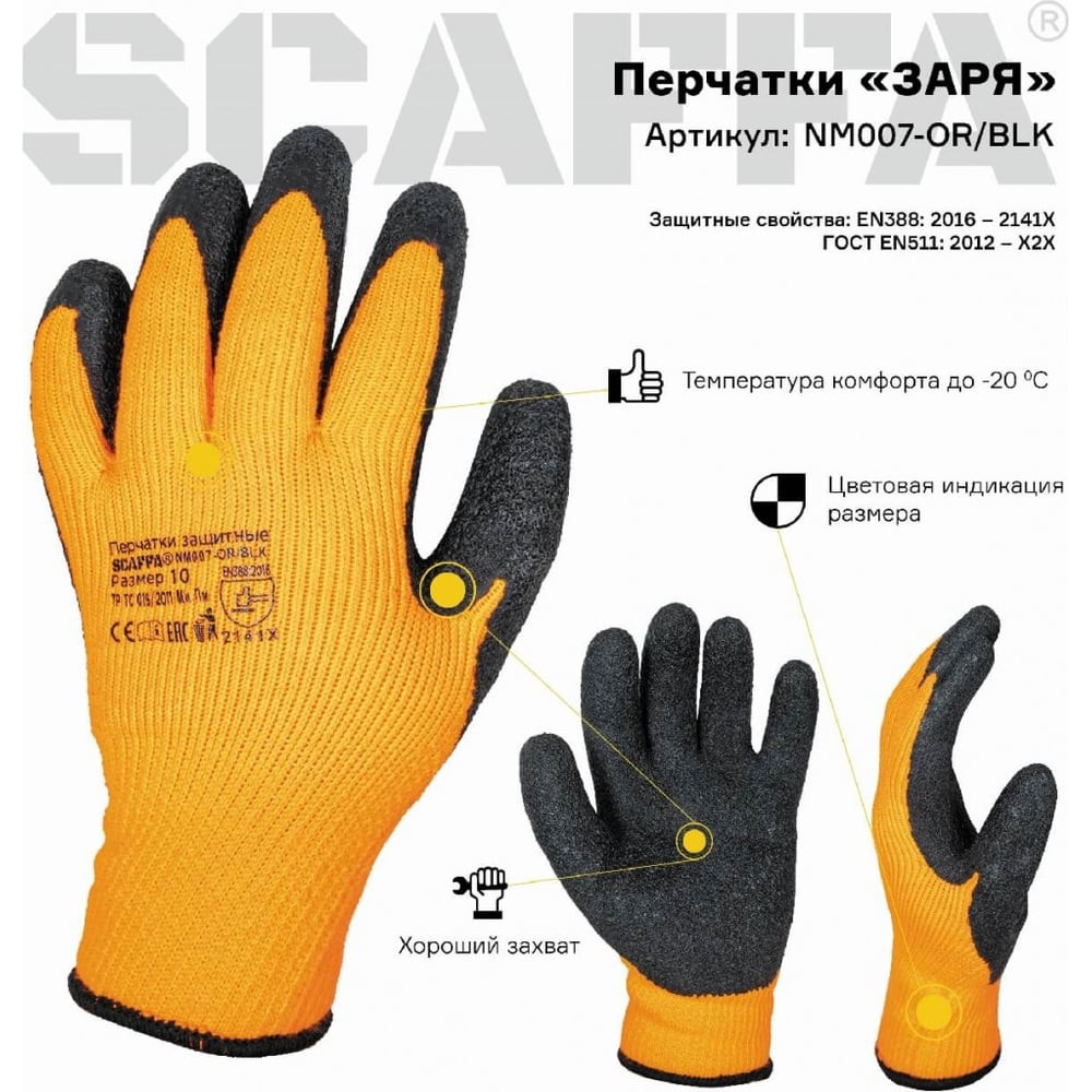 Перчатки для защиты от пониженных температур Scaffa Заря NM007-OR/BLK размер 9 00-00012448