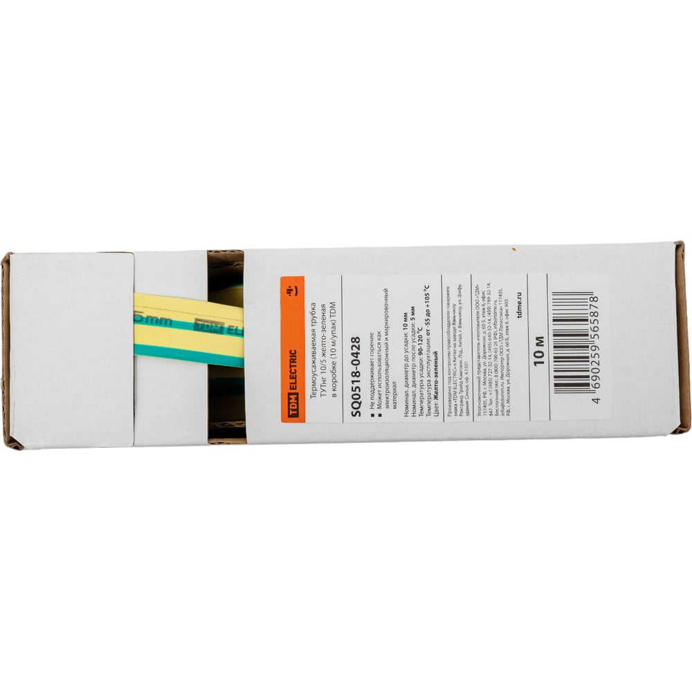 Термоусаживаемая трубка TDM ELECTRIC ТУТнг 10/5 желто-зеленая в коробке (10 м/упак) SQ0518-0428