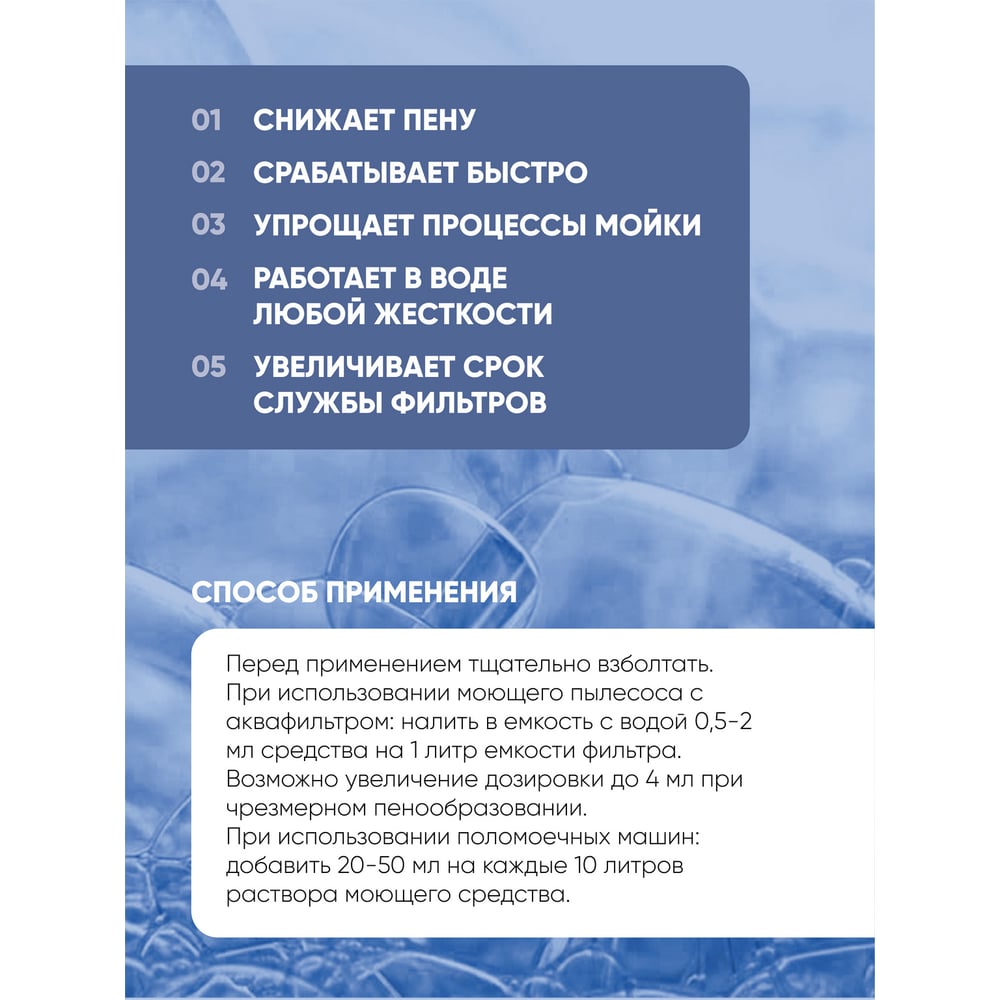 | Состав | Деионизированная вода (более 30 %), пеногасящие агенты (более 30 %), консервант (менее 5 %), функциональные добавки (менее 5 %). |