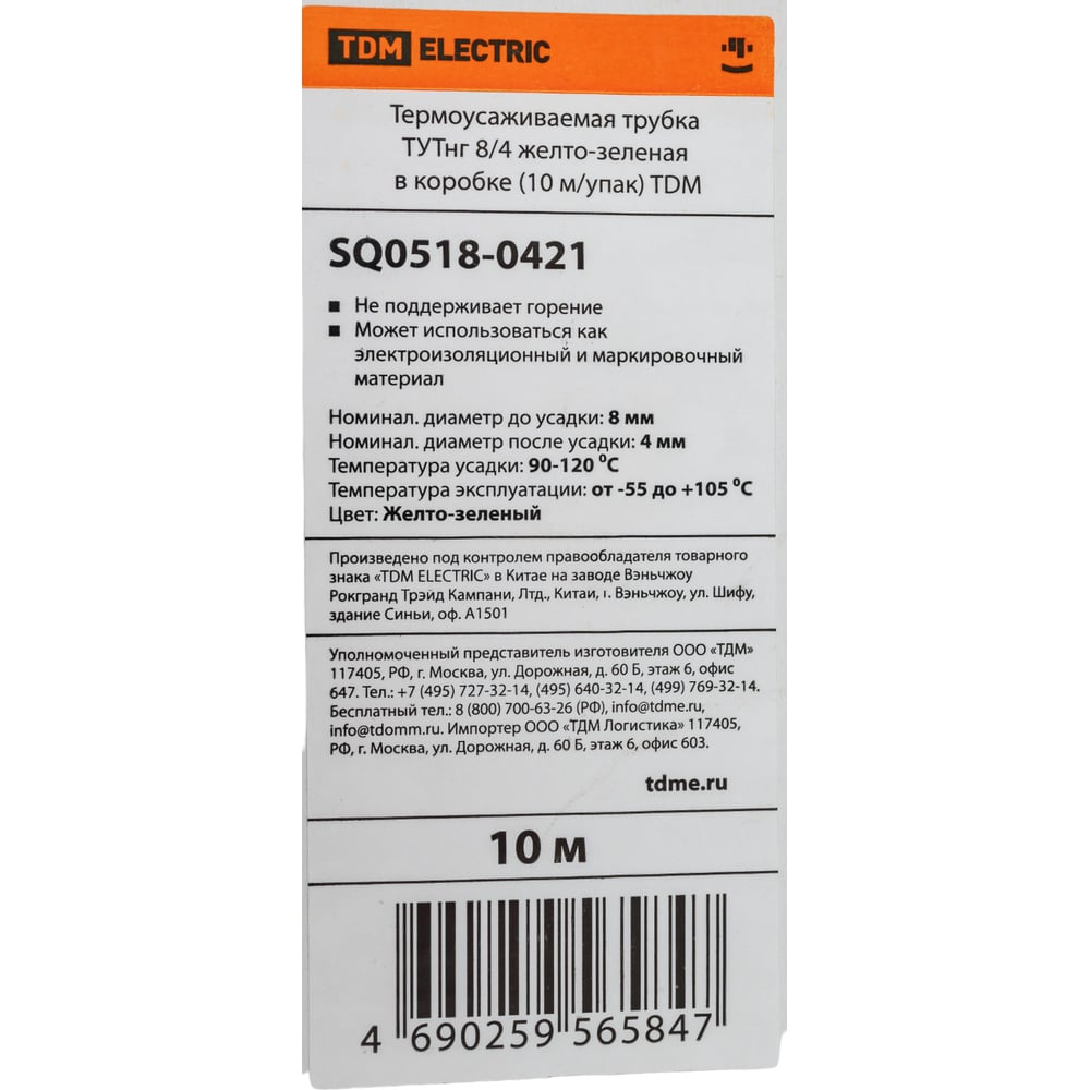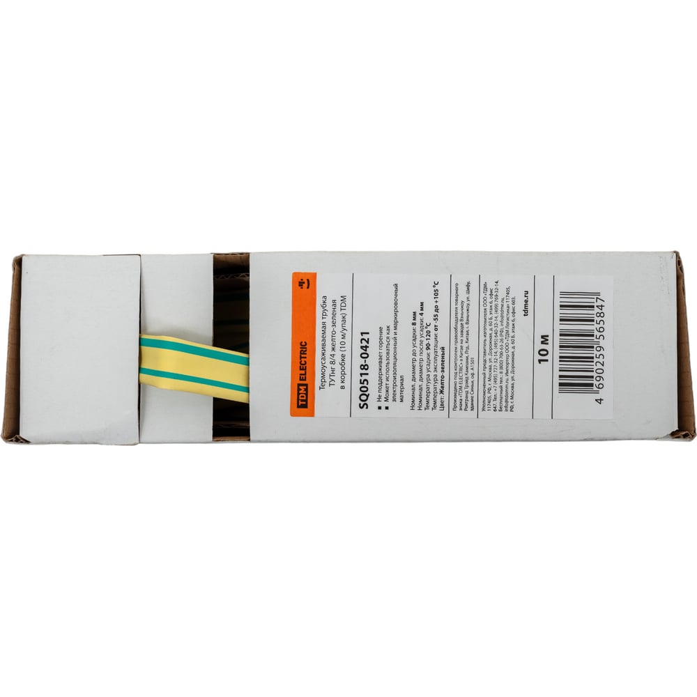Термоусадочная трубка TDM ELECTRIC ТУТнг 8/4 желто-зеленая в коробке, упаковка 10 метров SQ0518-0421