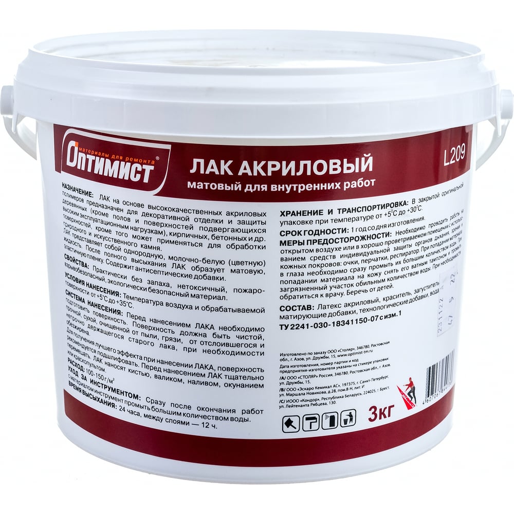 Акриловый лак Оптимист (матовый; 3 кг) OPL005