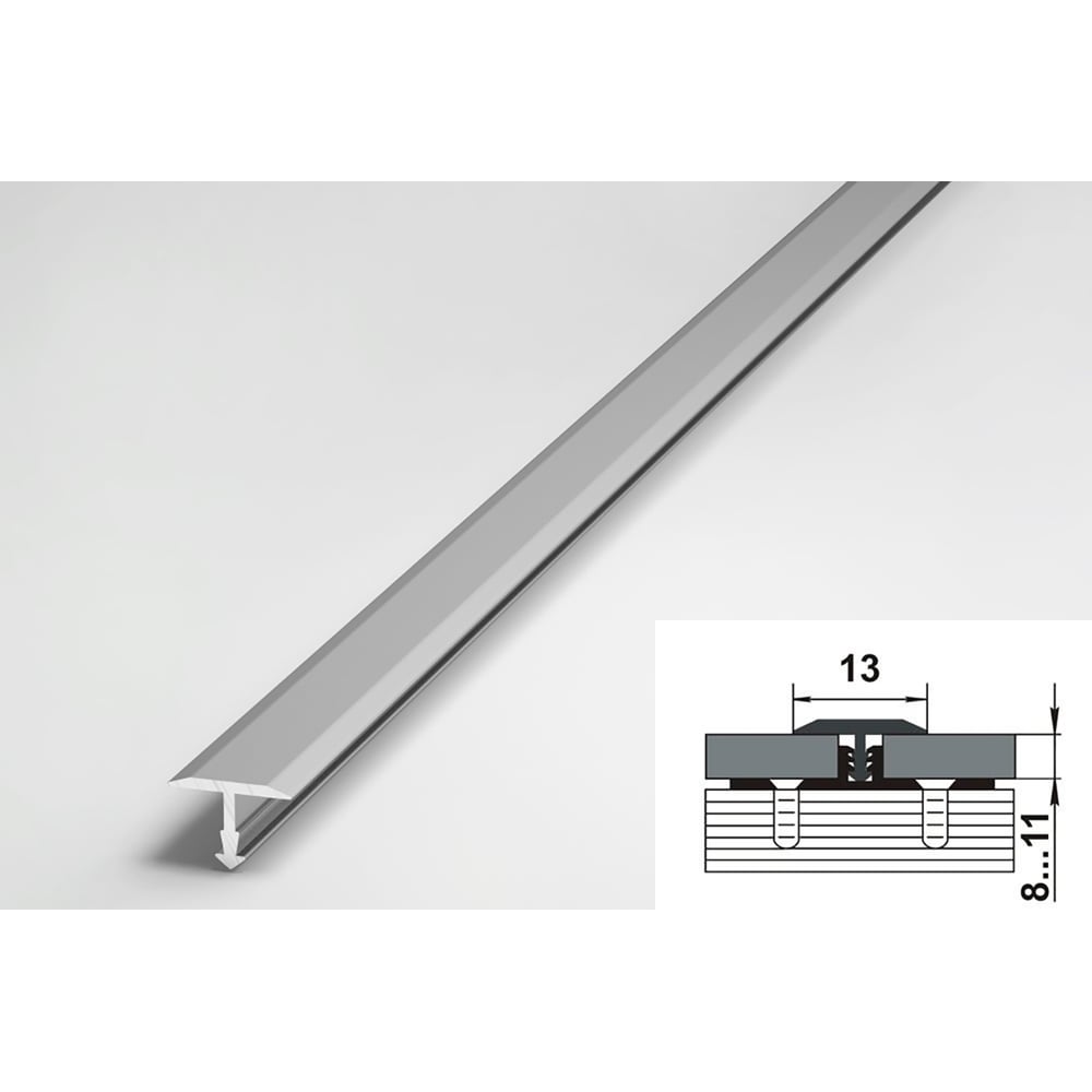 Порог прямой алюминиевый ЛУКА (13 мм, 2,7 м, анодированный, Серебро) УТ000039387