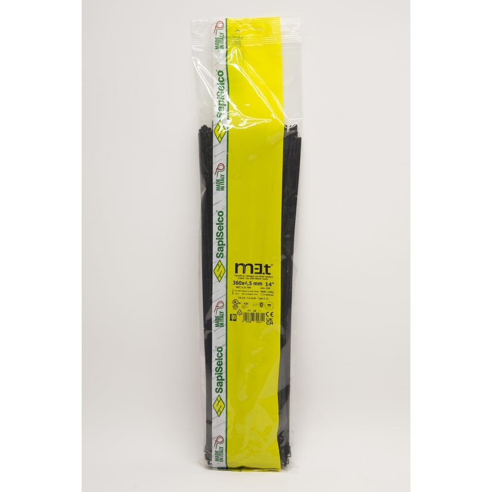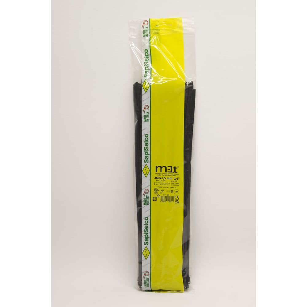 Стяжки с металлической вставкой в головке SapiSelco ME.T, черного цвета, 4.5x360, полиамид 6.6, уп.100 шт. MET.3.2126R