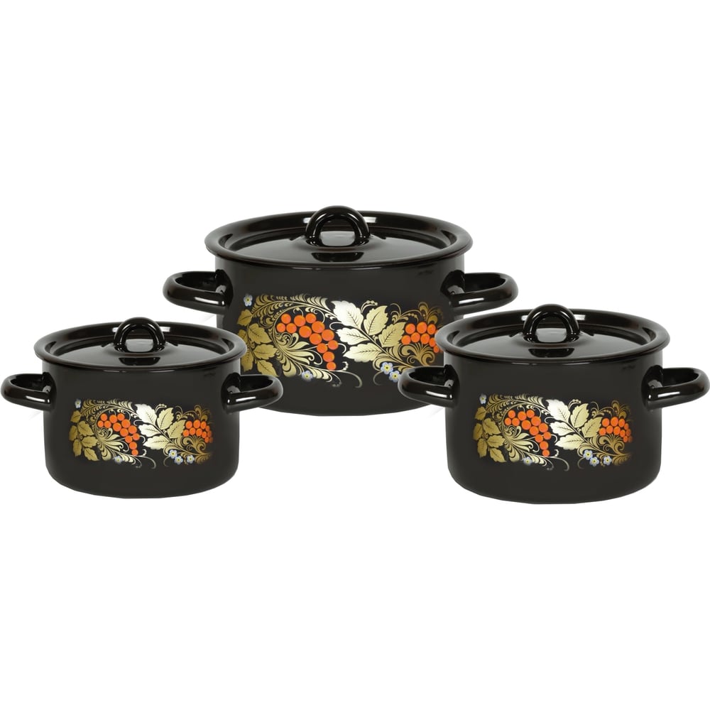 Эмалированная кастрюля СТАЛЬЭМАЛЬ цилиндрическая, 2.9 л, черный, рябина ХП5930