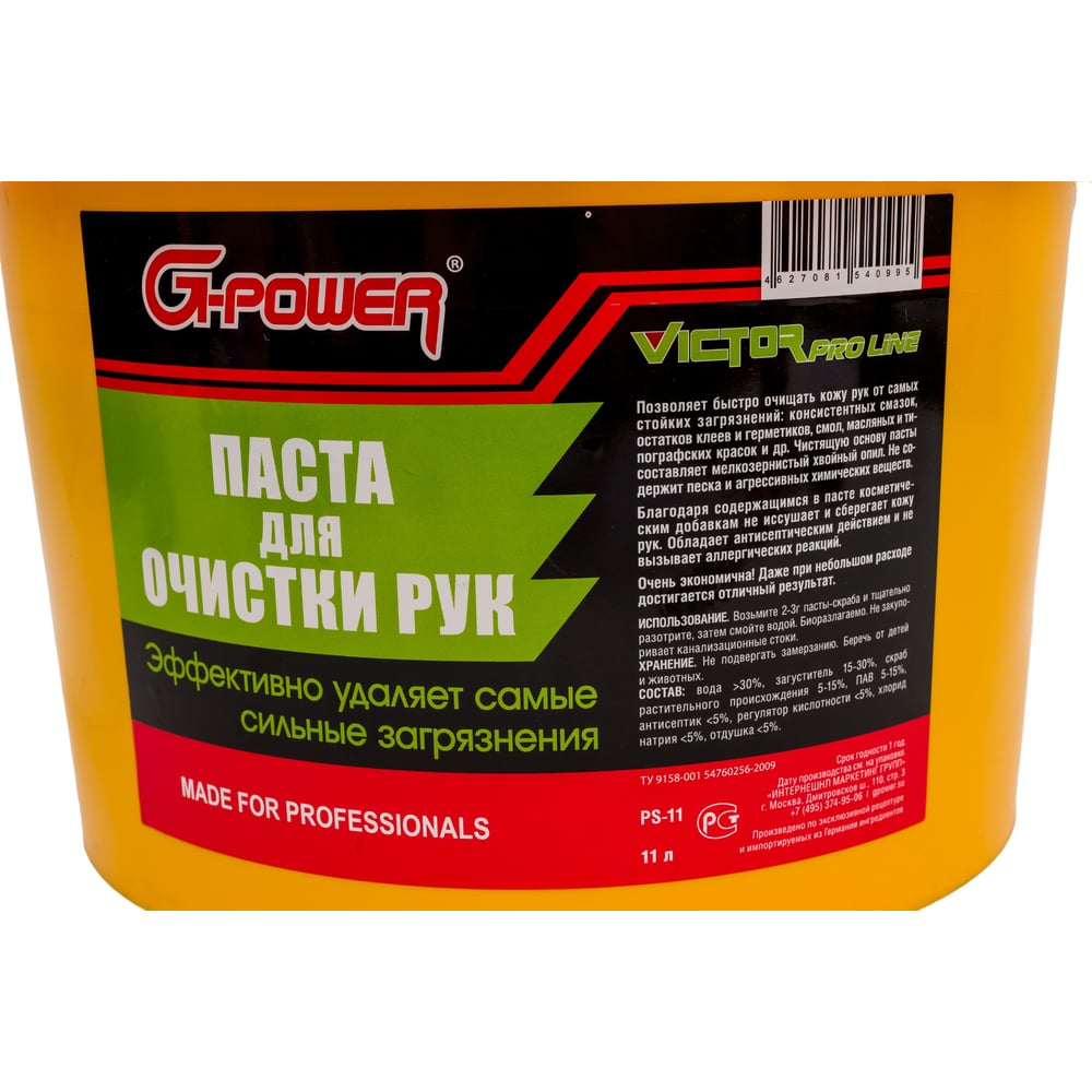 Паста для очистки рук G-POWER Victor Pro Line 11л PS-11