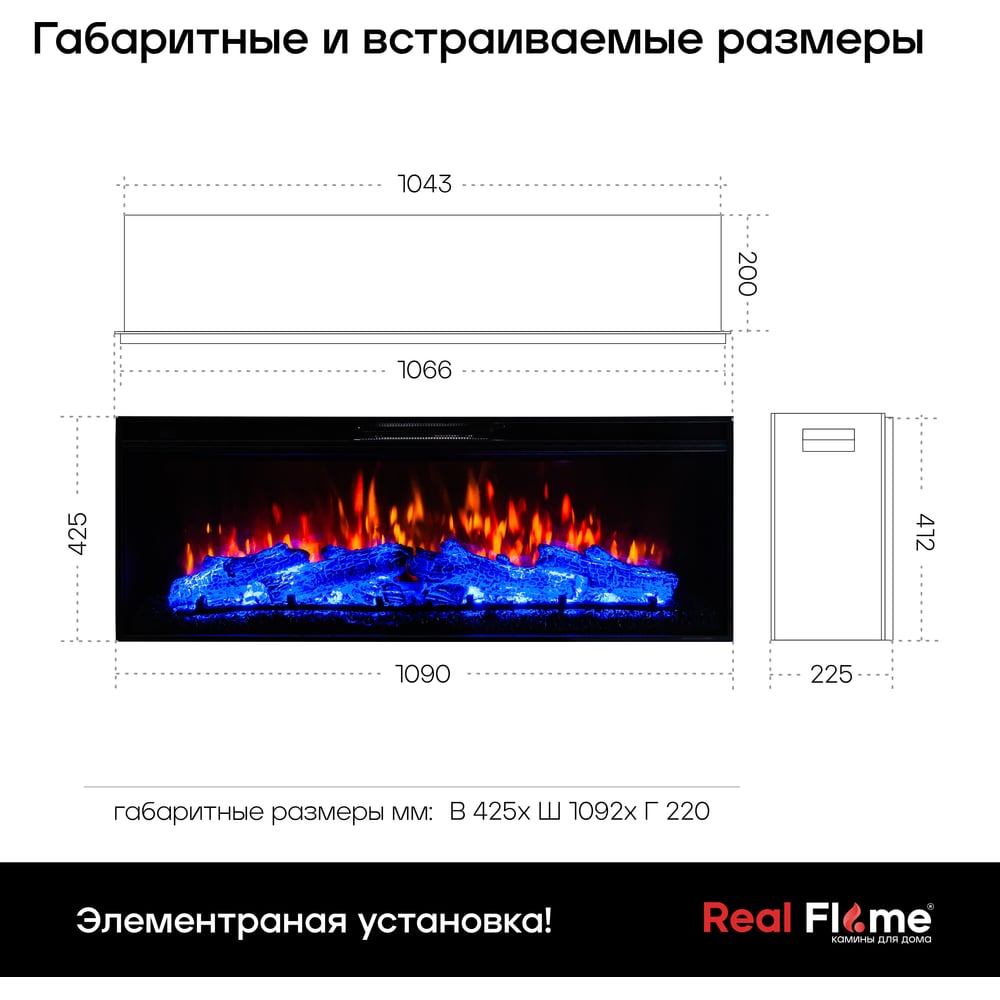 Габариты без упаковки 425х220х1092 мм Высота 425 мм Материал металл, стекло Ширина 1092 мм Цвет черный Тип фронтальный Тип диодный Вес нетто 30 кг Серия JOKER Установка встраиваемый Напряжение 220 В Глубина 220 мм Термостат да Материал рамки металл Вентилятор да Управление дистанционное Мощность 1.6 кВт Парогенератор нет Эффект живого огня есть 3D-эффект нет Звуковой эффект потрескивание Способ излучения тепла односторонний С обогревом есть Эффект топлива дрова